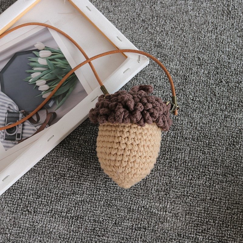 Kids Girls Fashion Sweet Cute Handmade Woven Wool Mushroom Crossbody Bag