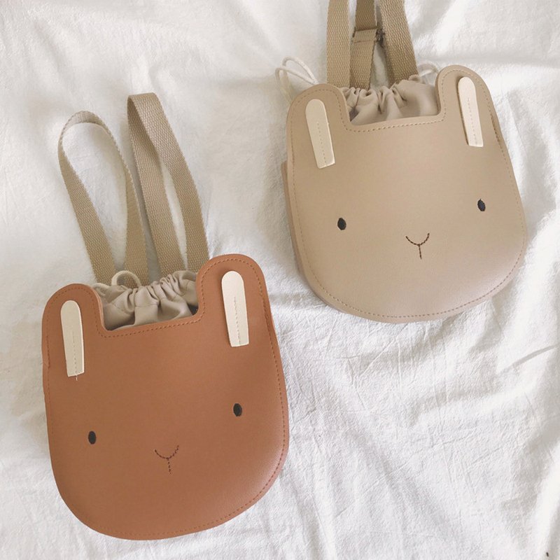 Kids Girls Fashion Sweet Cute Solid Color Cartoon Rabbit Bear Shape Drawstring Backpacks Bag