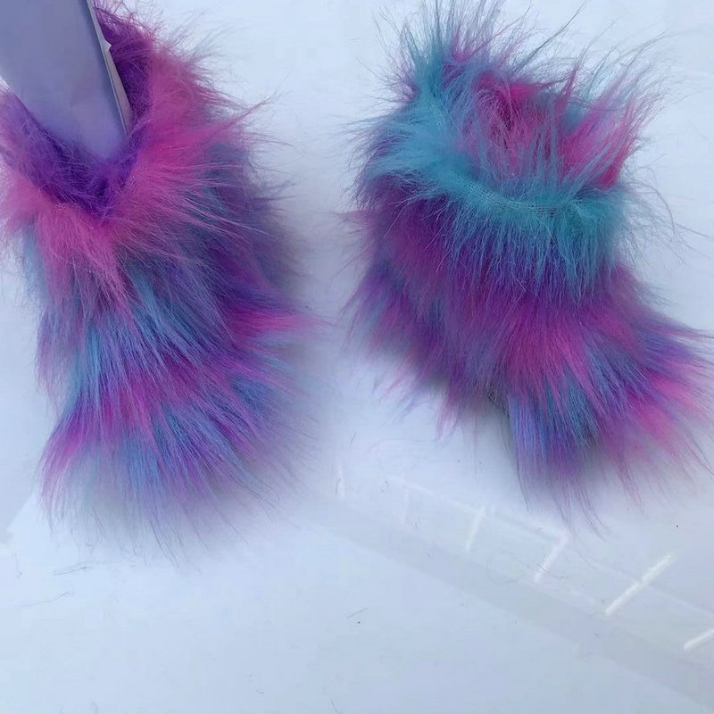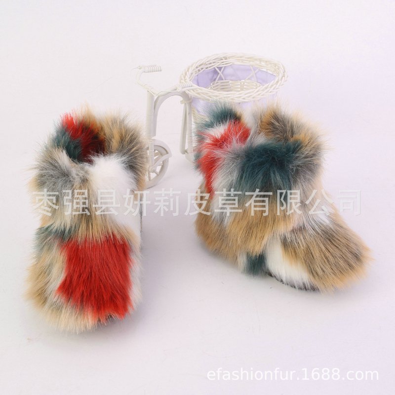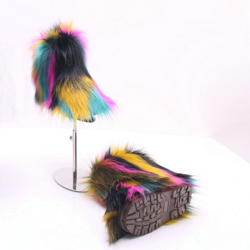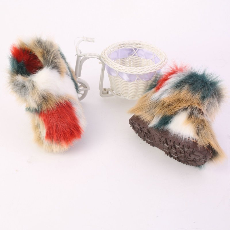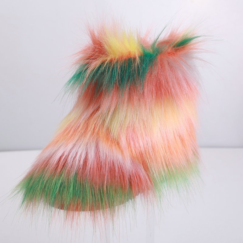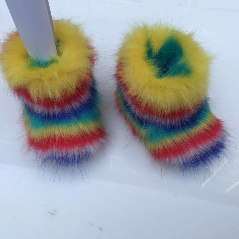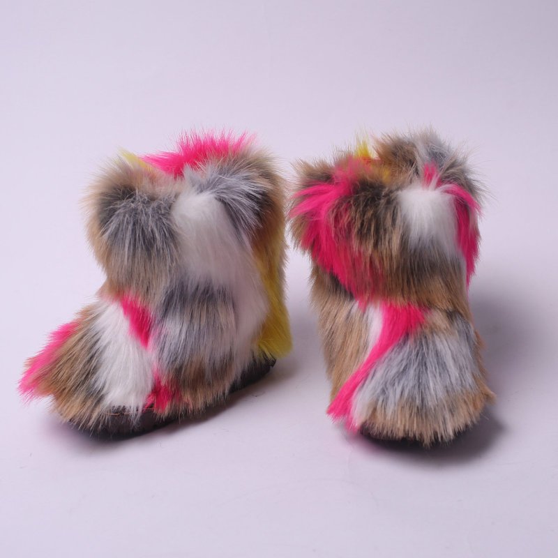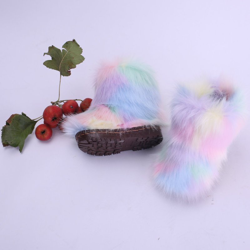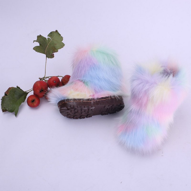 Kids Girls Faux Fur Rainbow Color Gradient Plush Snow Boots