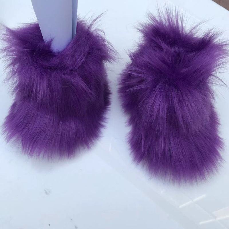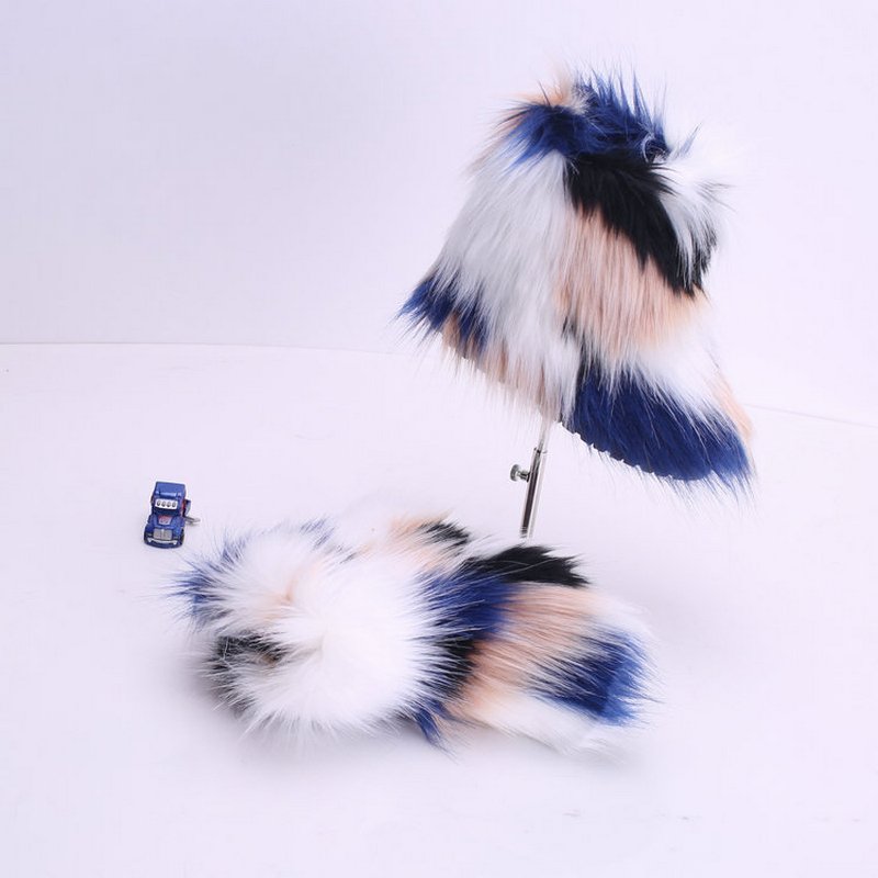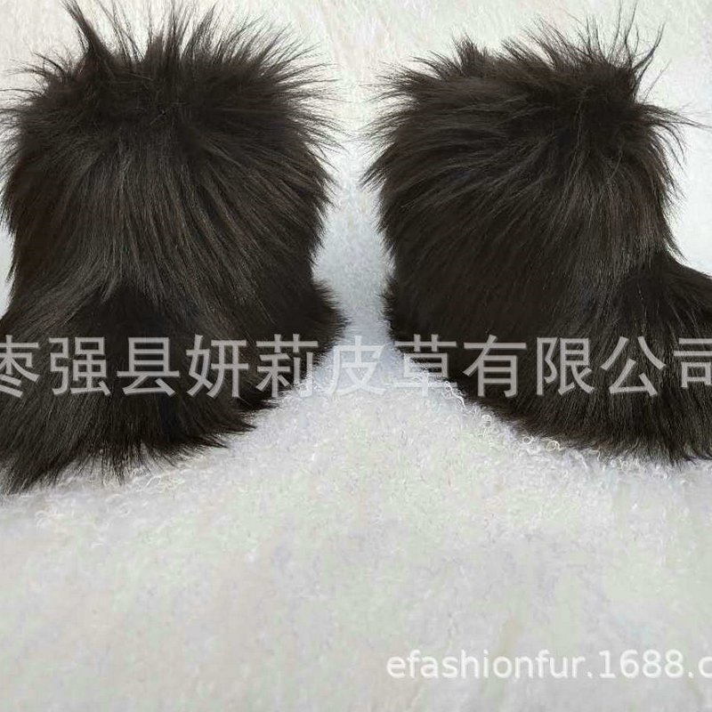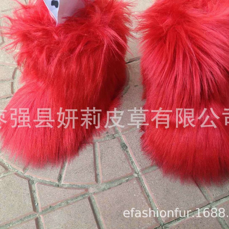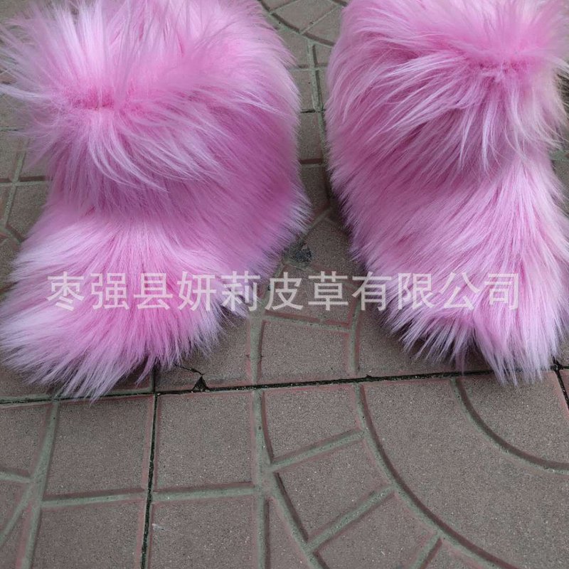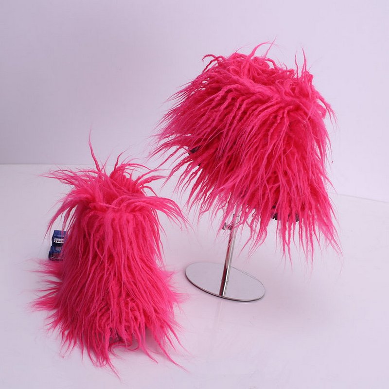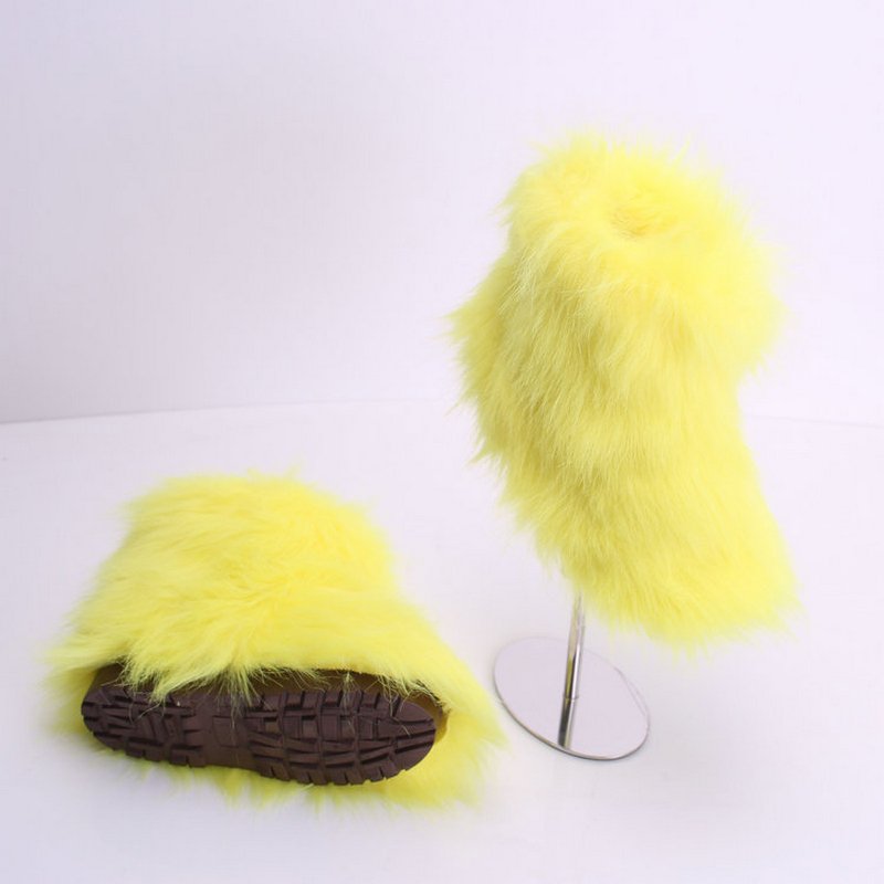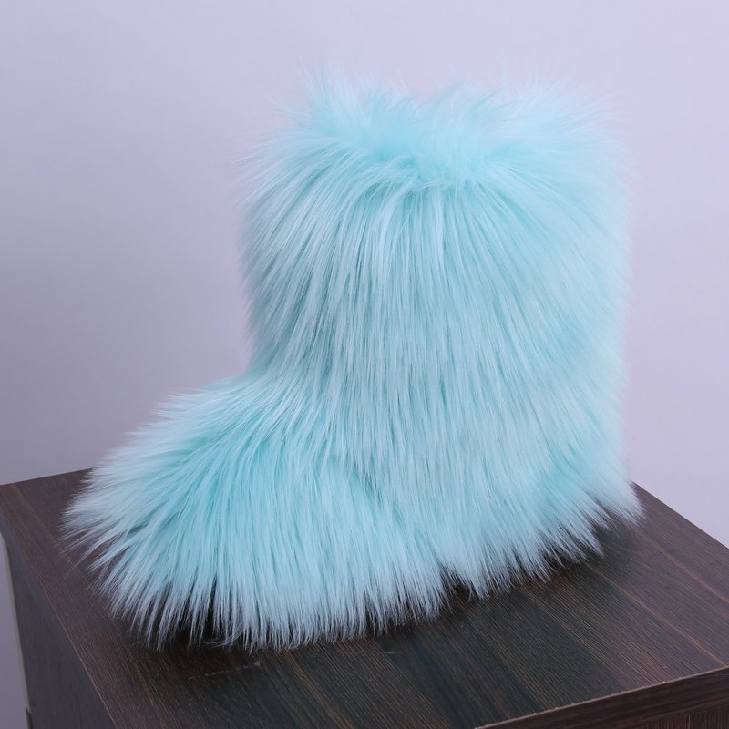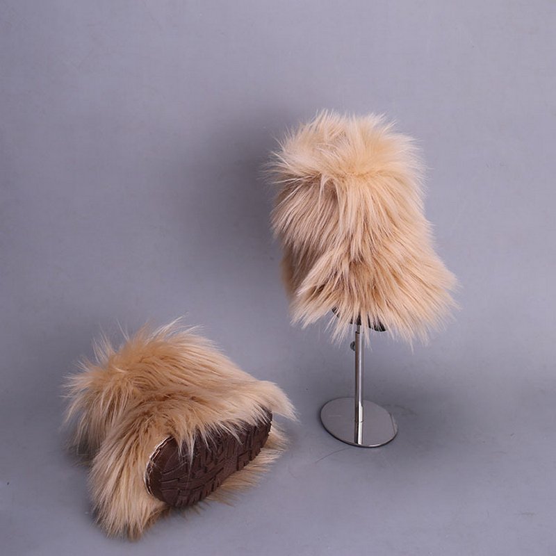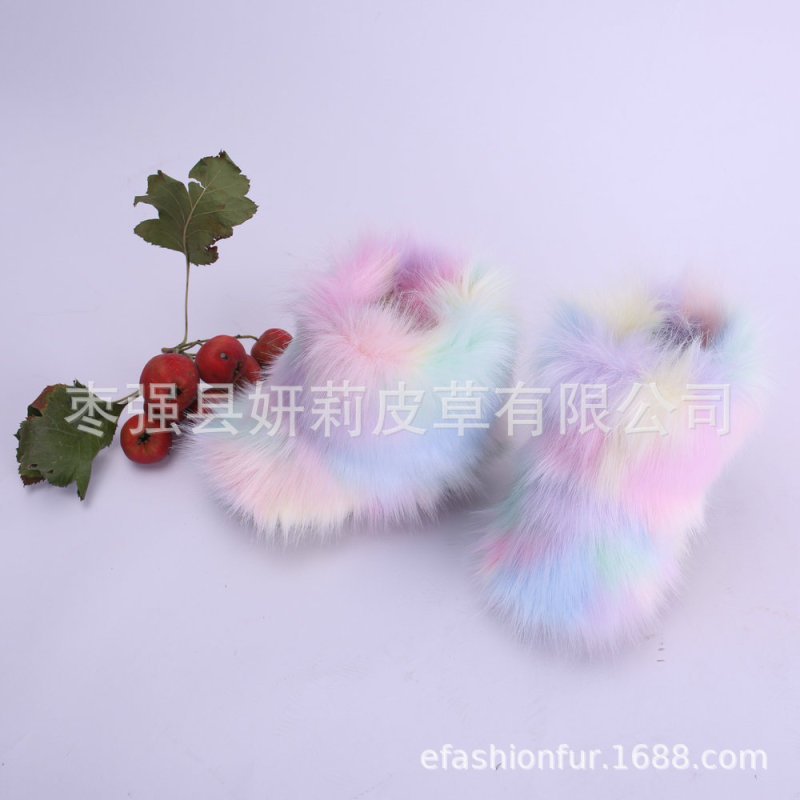 Kids Girls Faux Fur Rainbow Color Gradient Plush Snow Boots