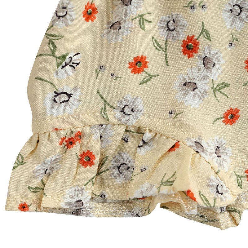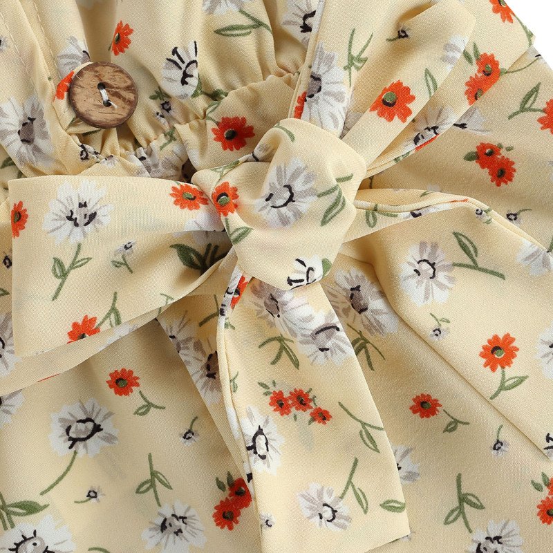 Kids Girls Pastoral Sleeveless Floral All Over Print V-neck Ruffled Sling Romper