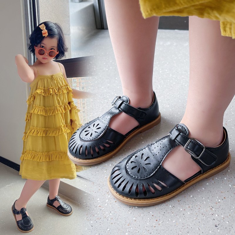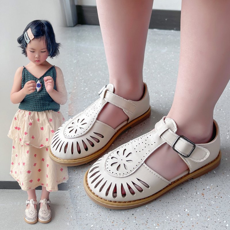 Kids Girls Retro Solid Color Hollow Out Design Sandals