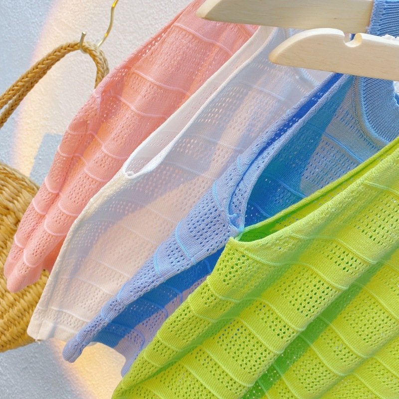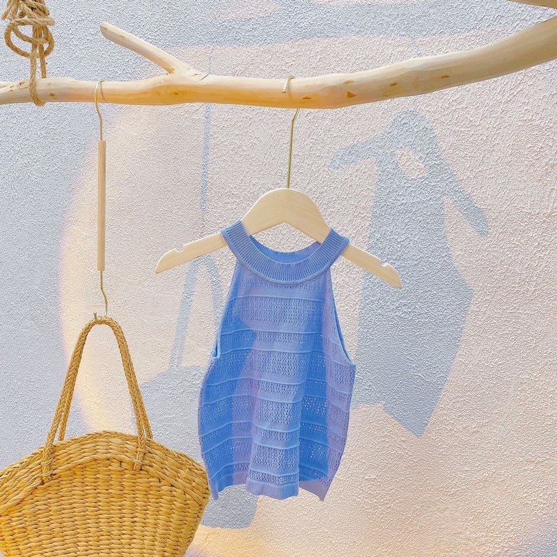 Kids Girls Simple Solid Color Round Neck Sleeveless Knit Vest