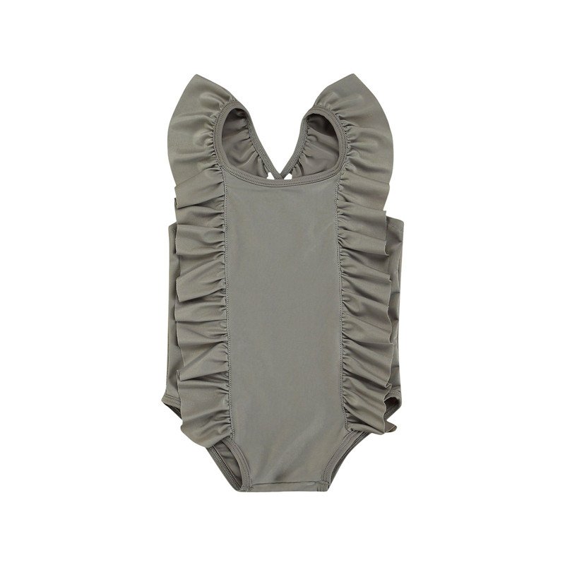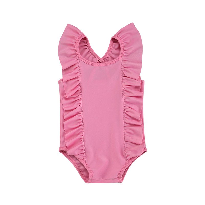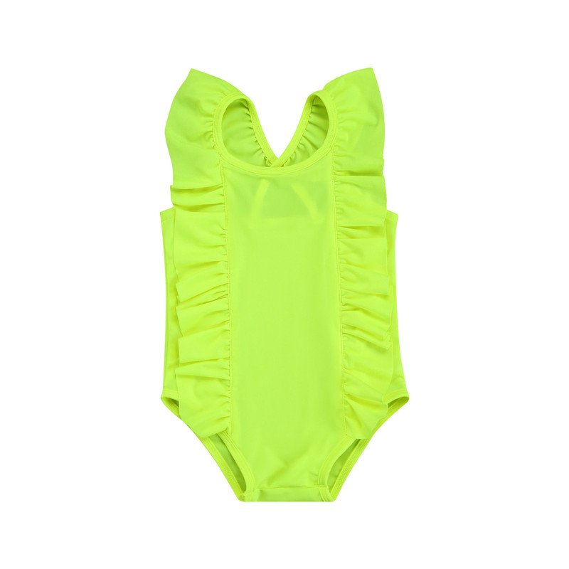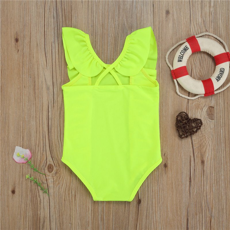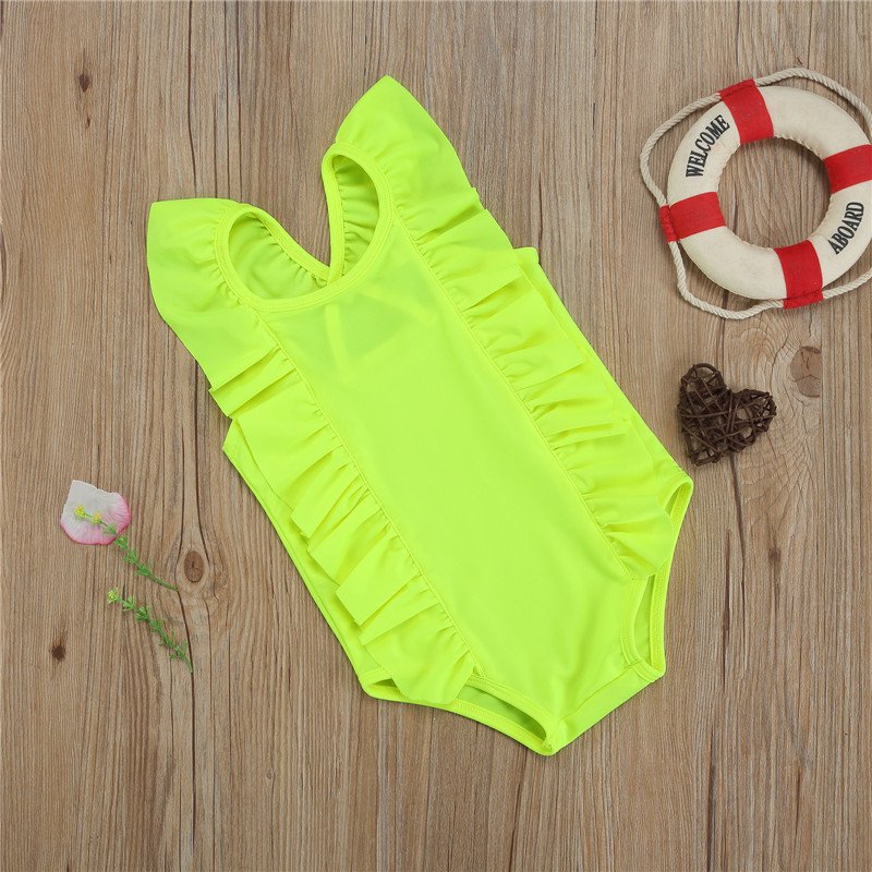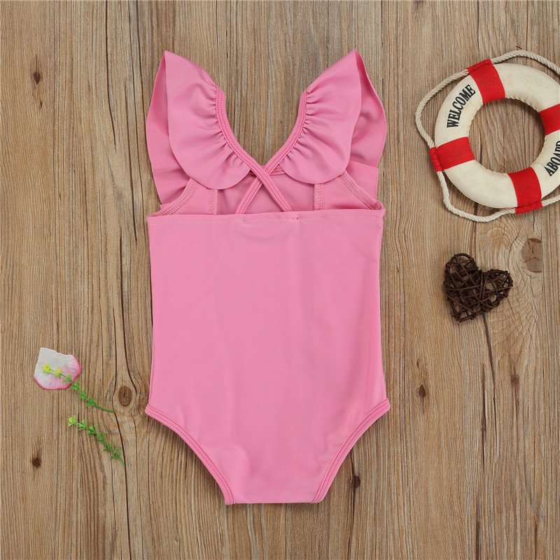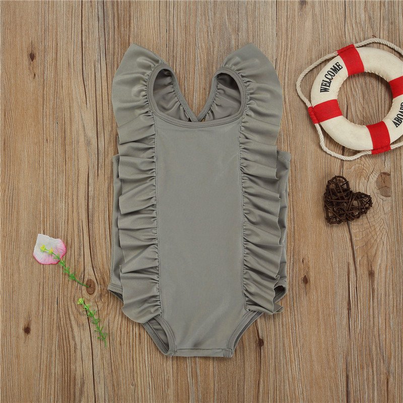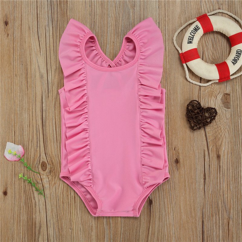 Kids Girls Simple Solid Color Sleeveless Backless Ruffled Beachwear Bathing Swimwear