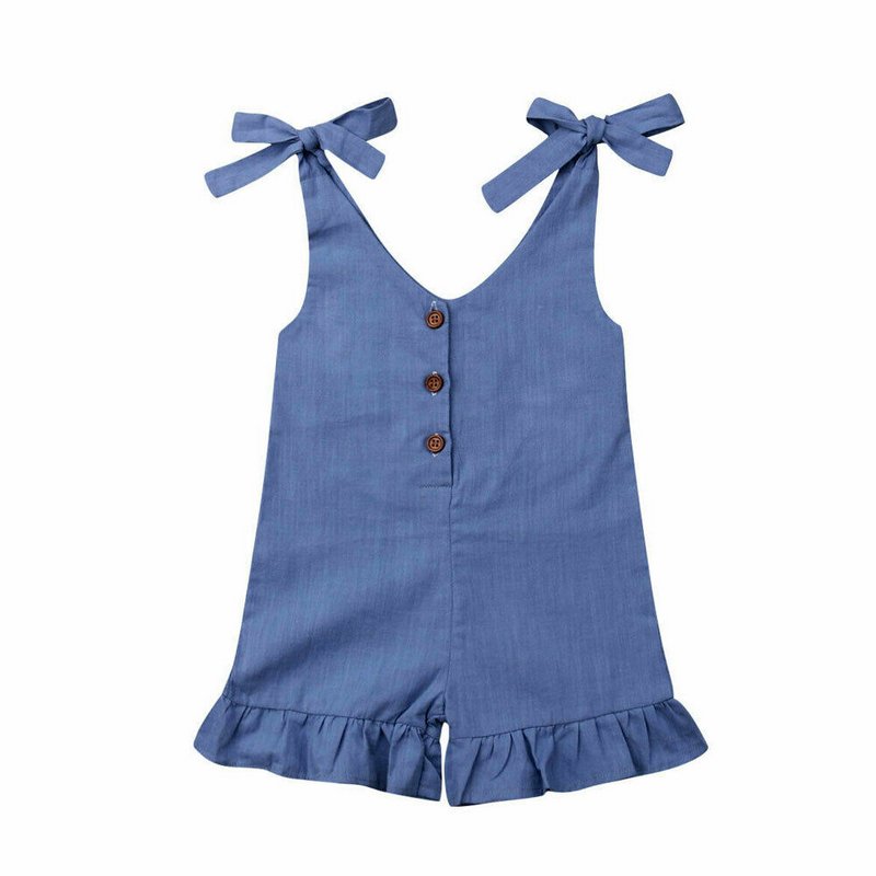 Kids Girls Simple Solid Color Sleeveless Ruffled Romper