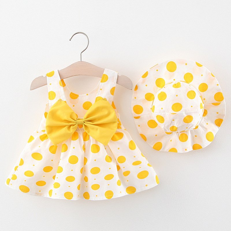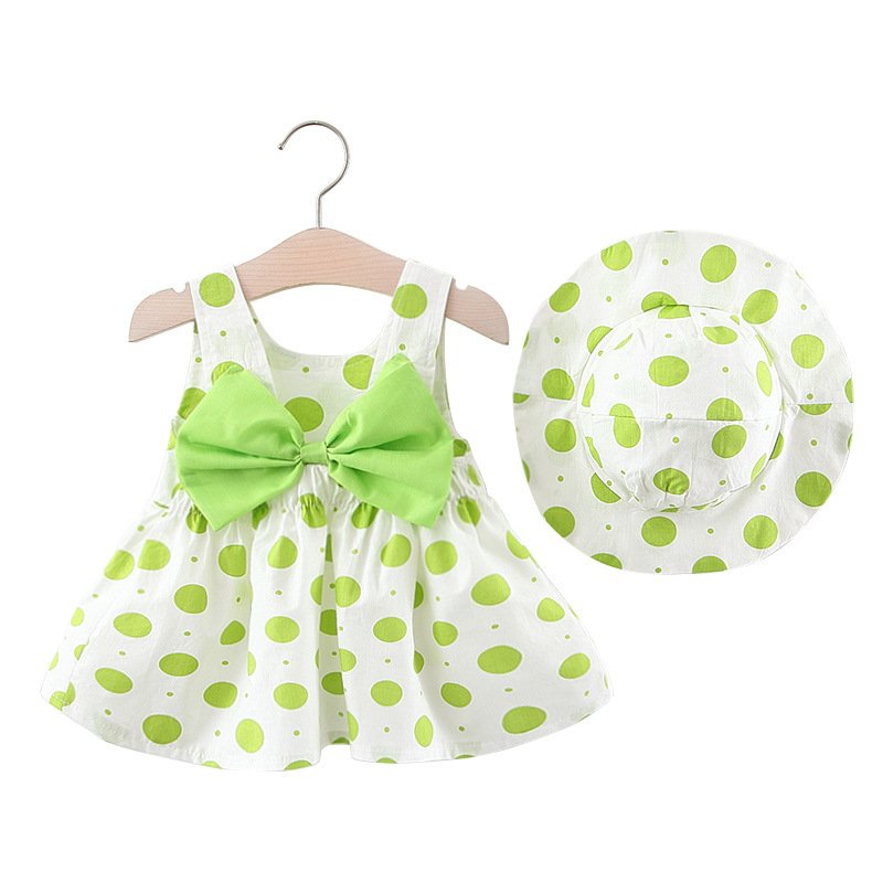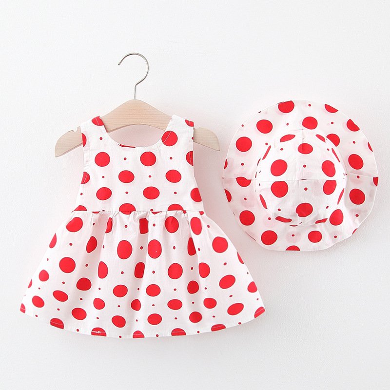 Kids Girls Sleeveless Print Polka Dot Hat Dress