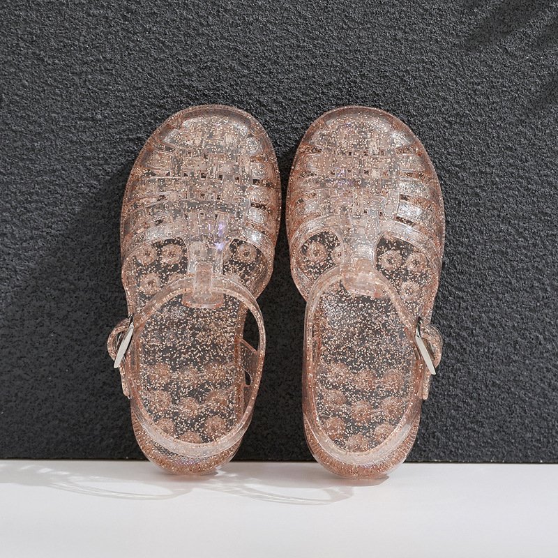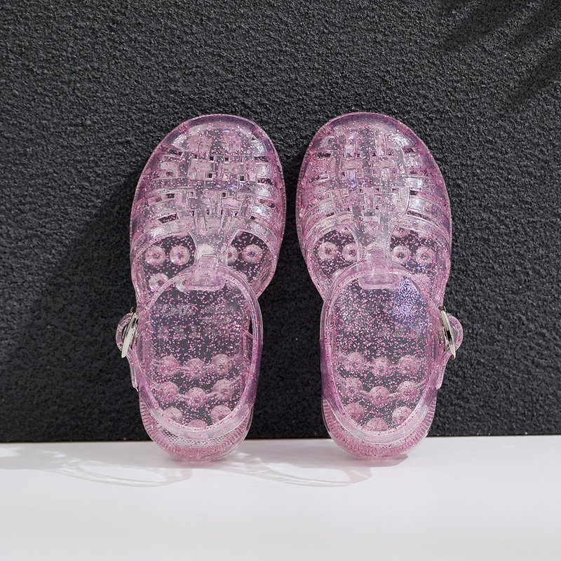 Kids Girls Summer Casual Candy Crystal Transparent Flat Gladiator Sandals