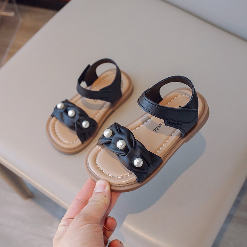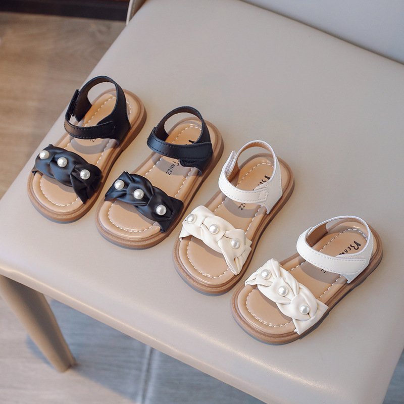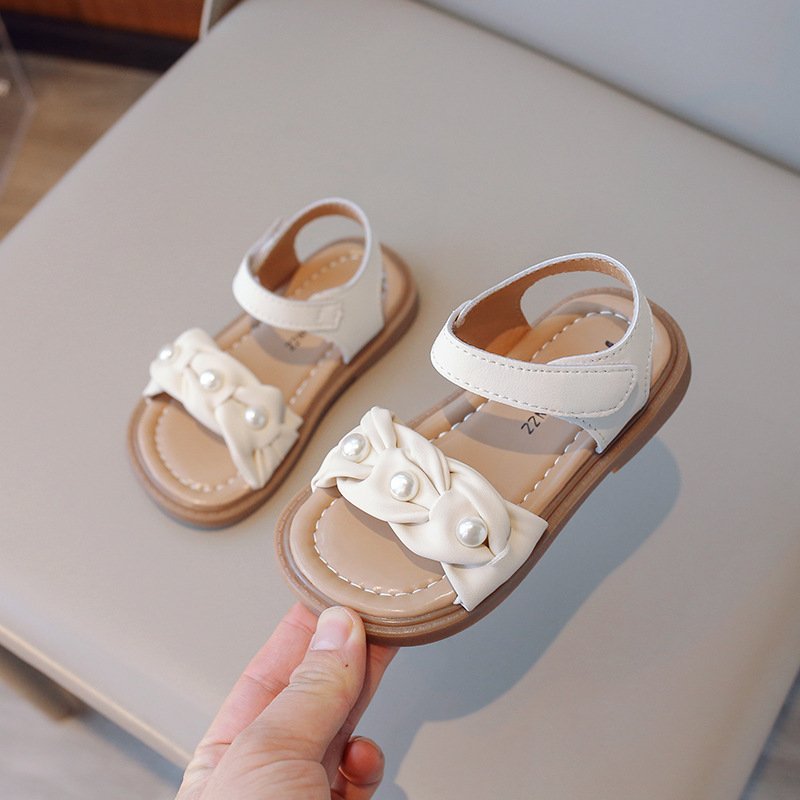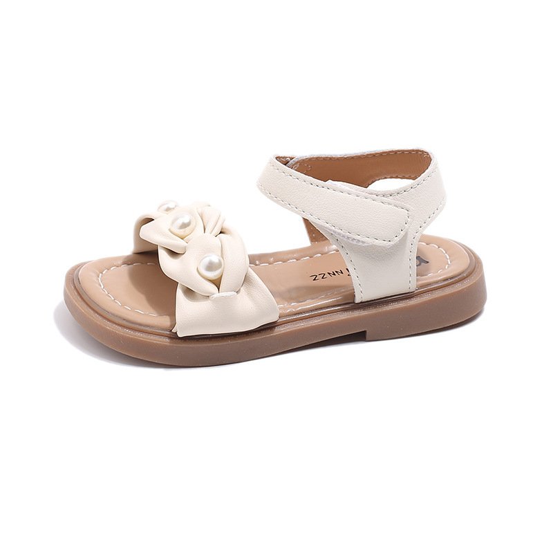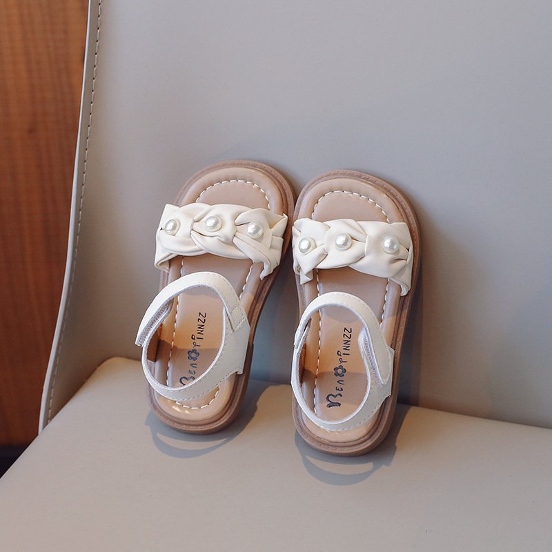 Kids Girls Summer Casual Cute Pearl Velcro Flat Sandals