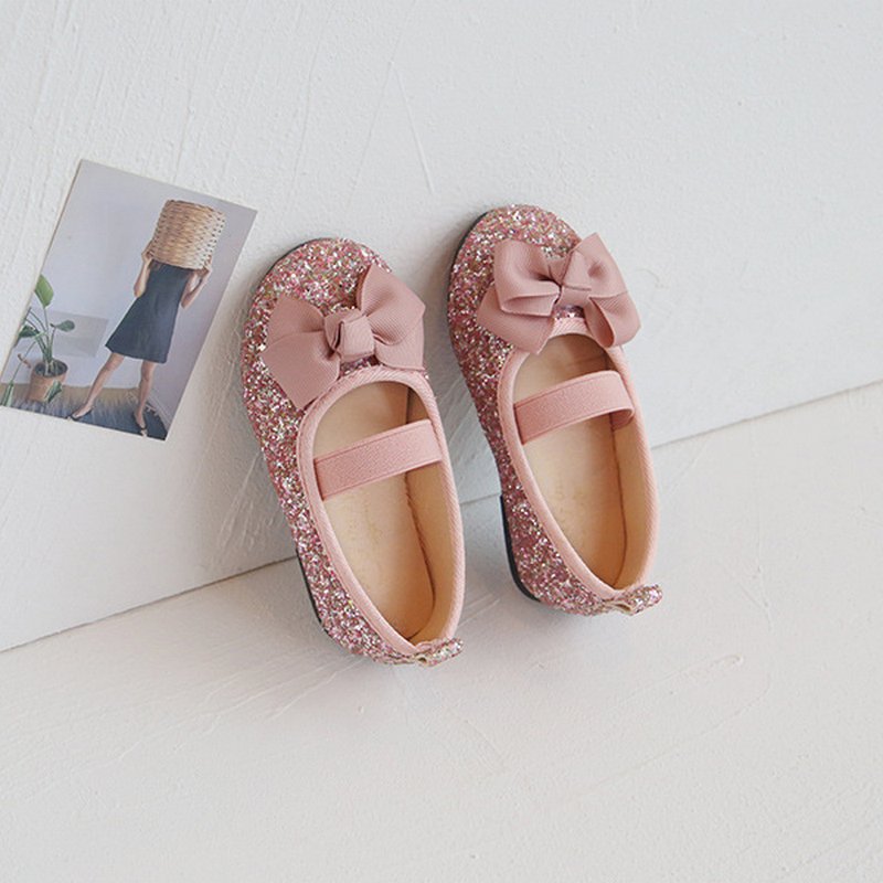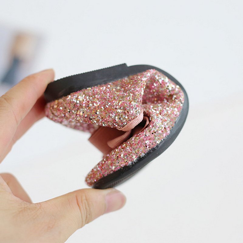 Kids Girls Sweet Bow Design Glitter Soft Bottom Elastic Flats