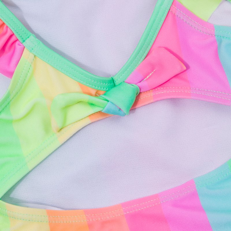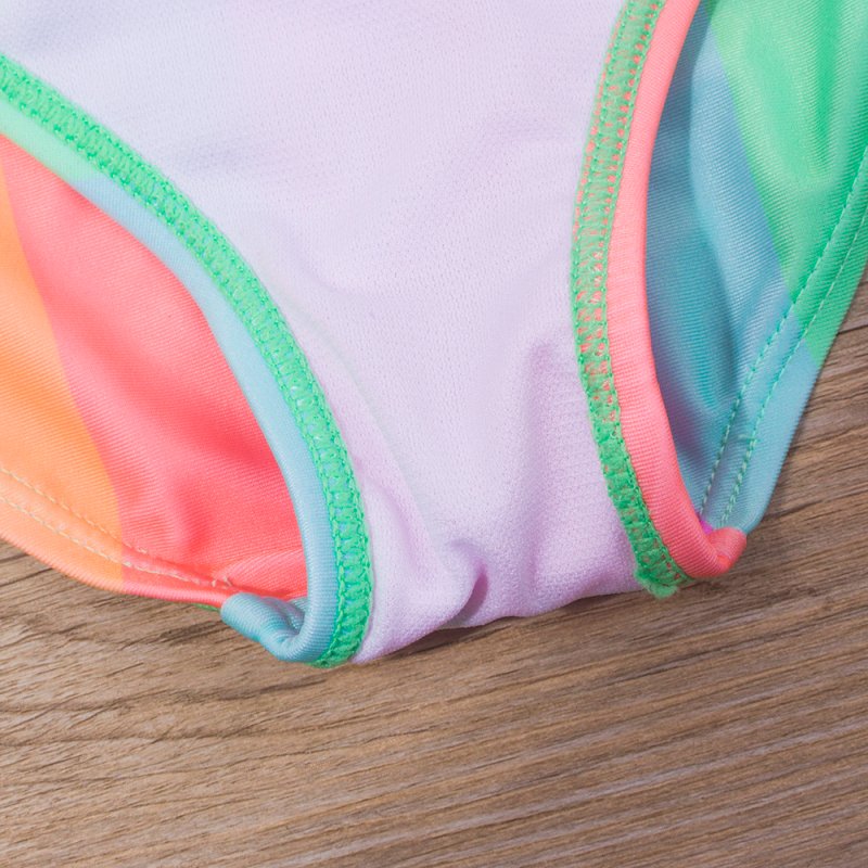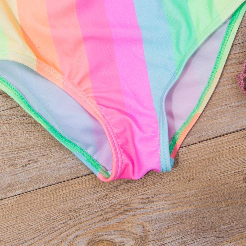 Kids Girls Sweet Colorful Striped Ruffled Summer Beachwear Swimwear