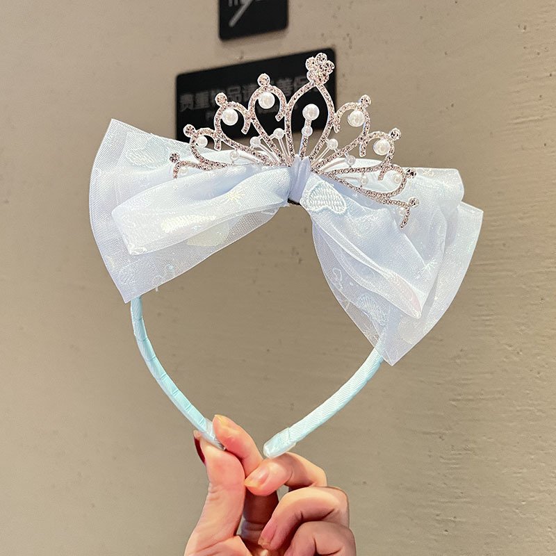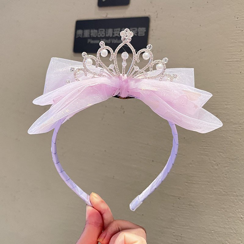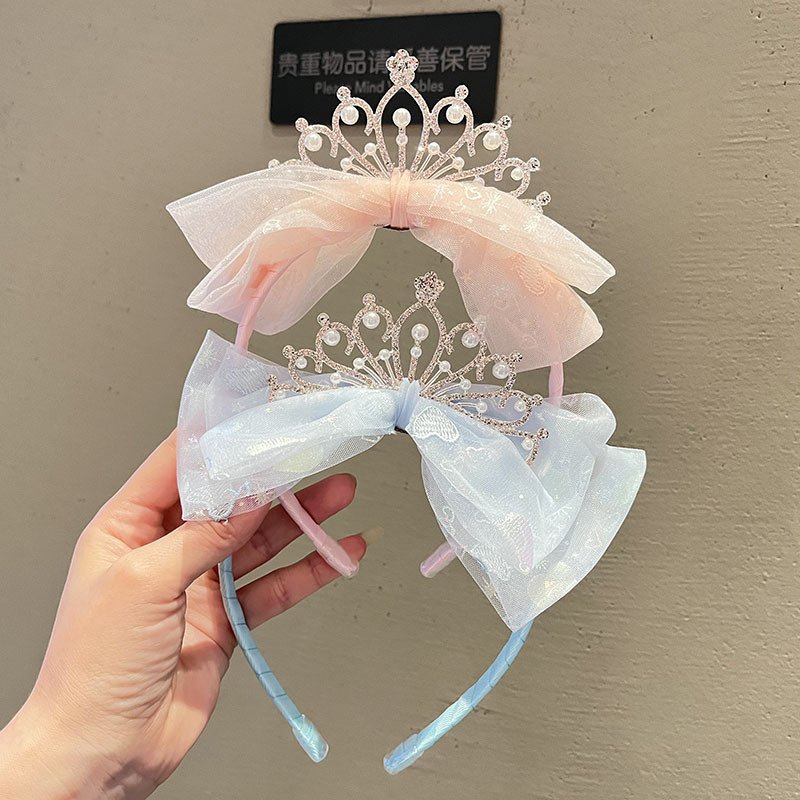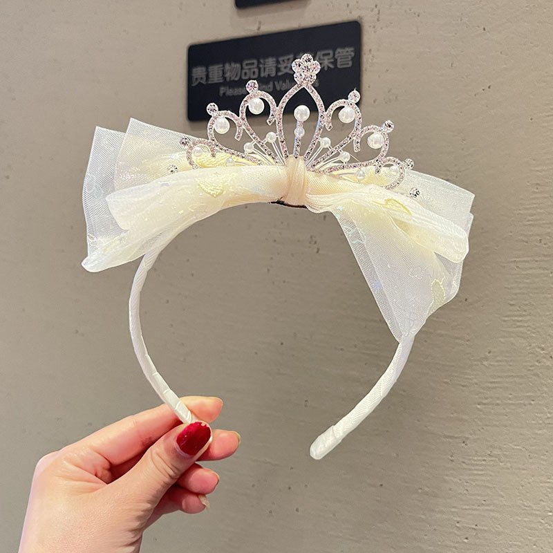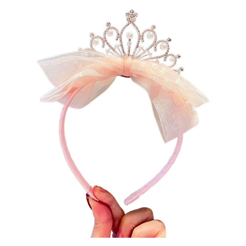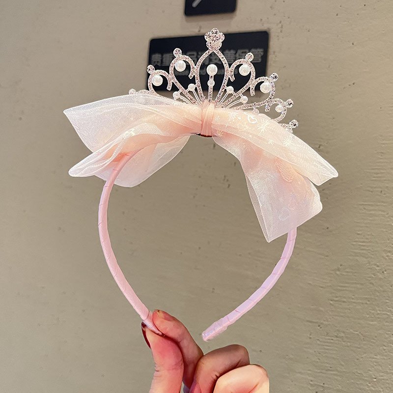 Kids Girls Sweet Cute Rhinestone Pearl Crown Bow Hairband
