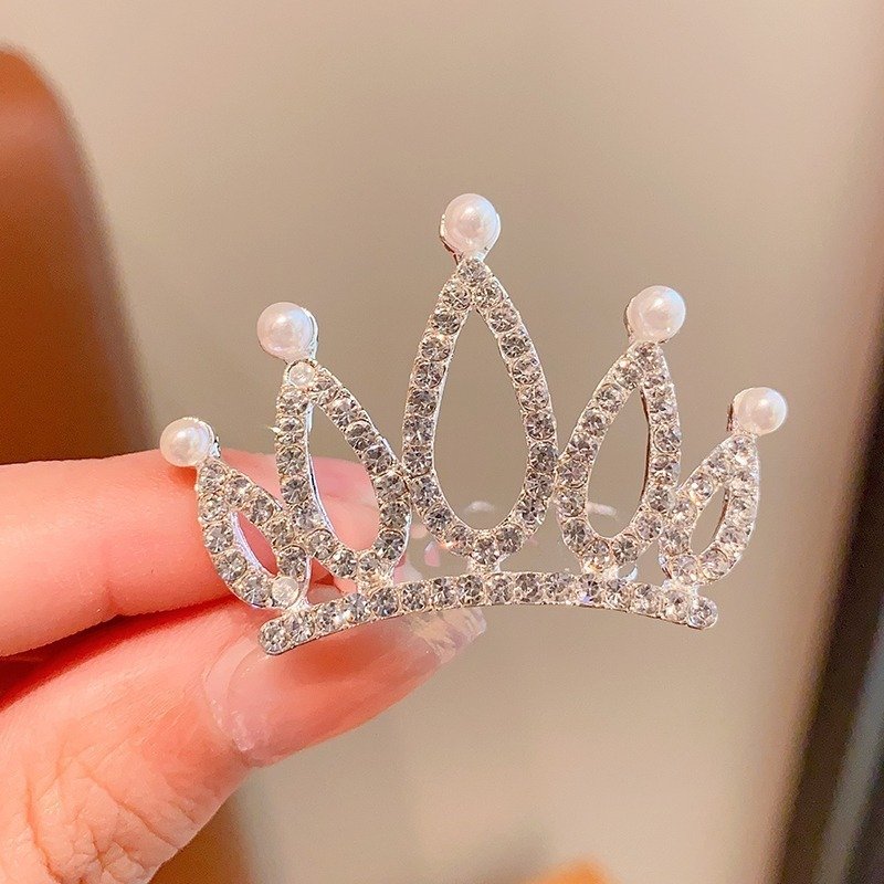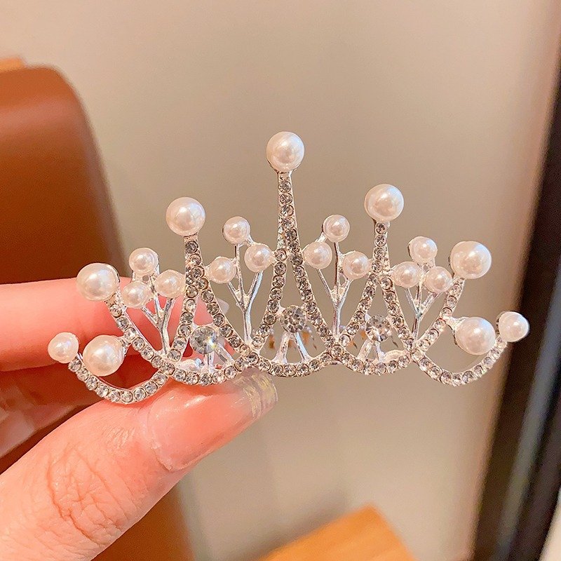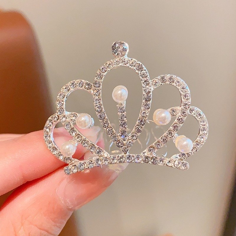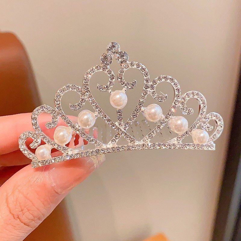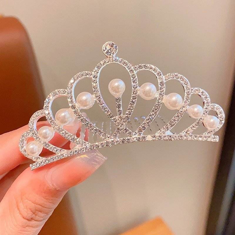 Kids Girls Sweet Cute Rhinestone Pearl Crown Comb Hairclip