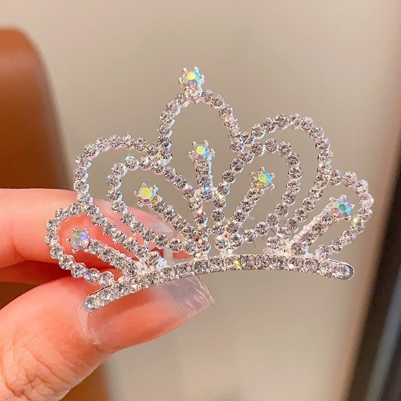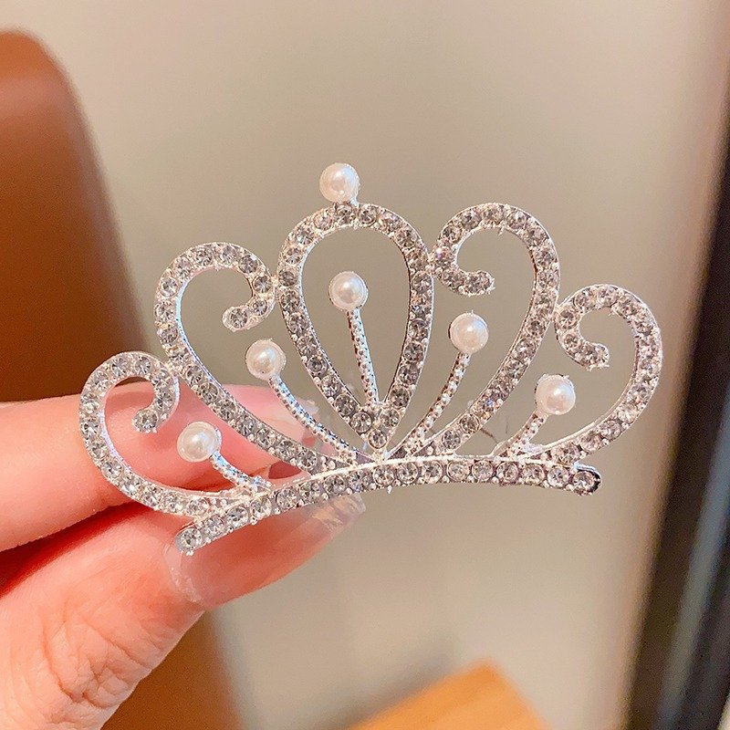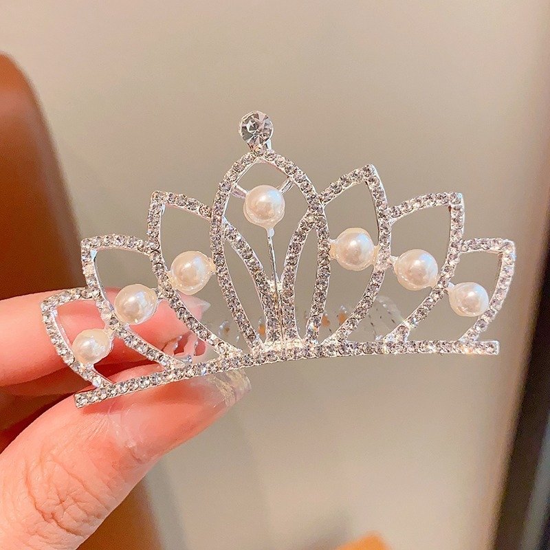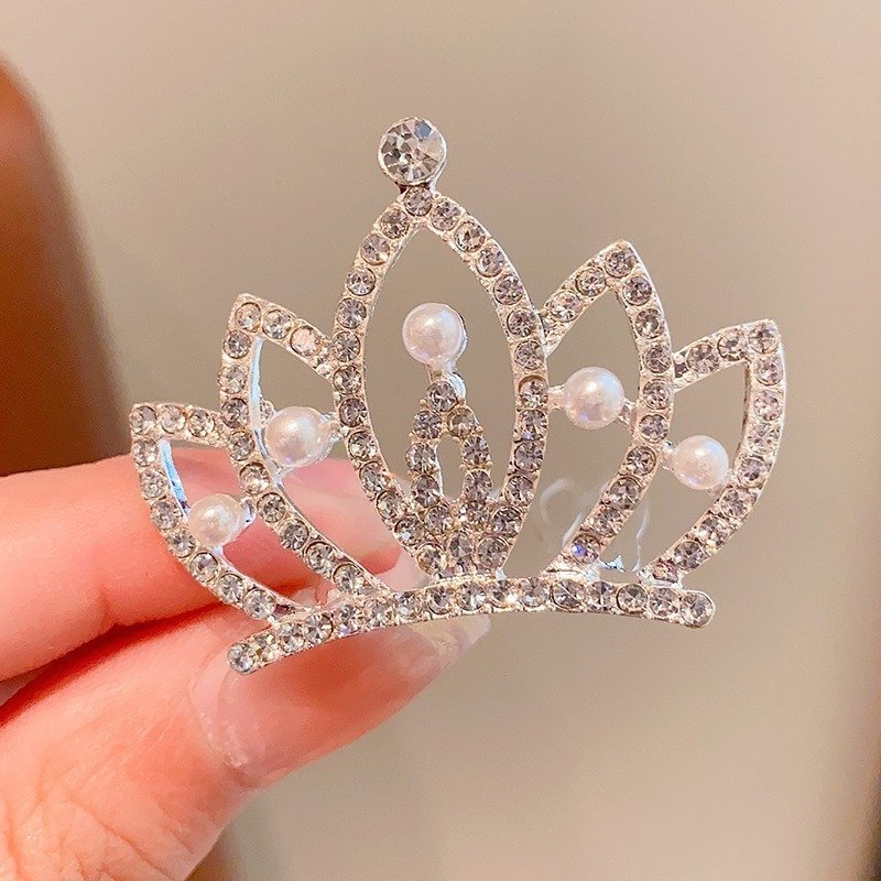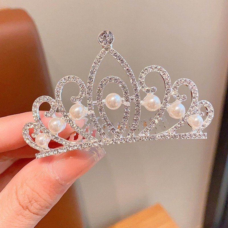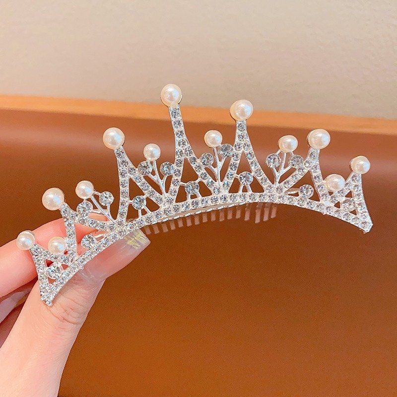 Kids Girls Sweet Cute Rhinestone Pearl Crown Comb Hairclip