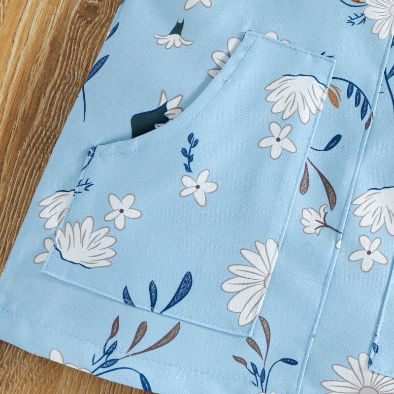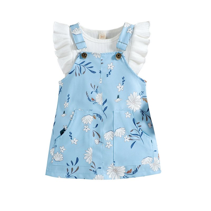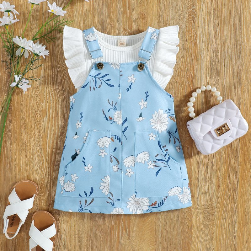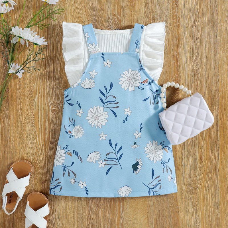 Kids Girls Sweet Round Neck Sleeveless Ruffled Top And Suspender Skirt Set