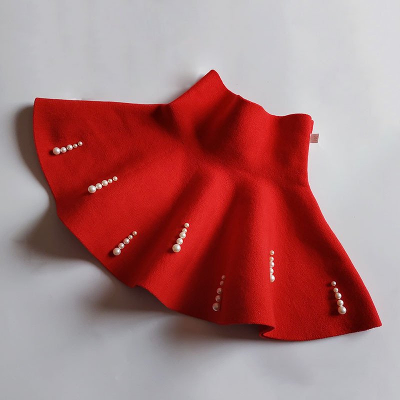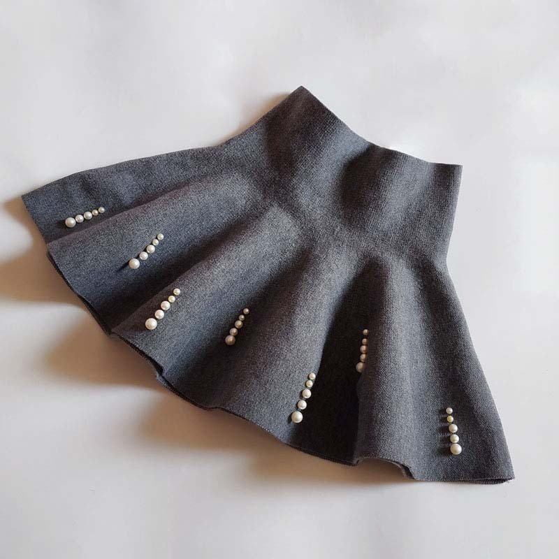 Kids Girls Sweet Solid Color Pearl Design High Waist A-line Pleated Skirt