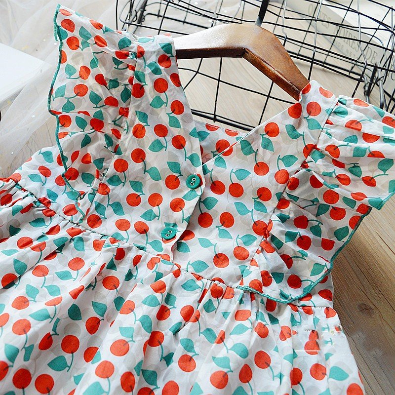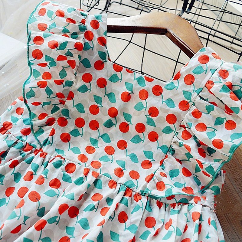Kids Girls Sweet Square Neck Sleeveless Ruffled All Over Print Dress