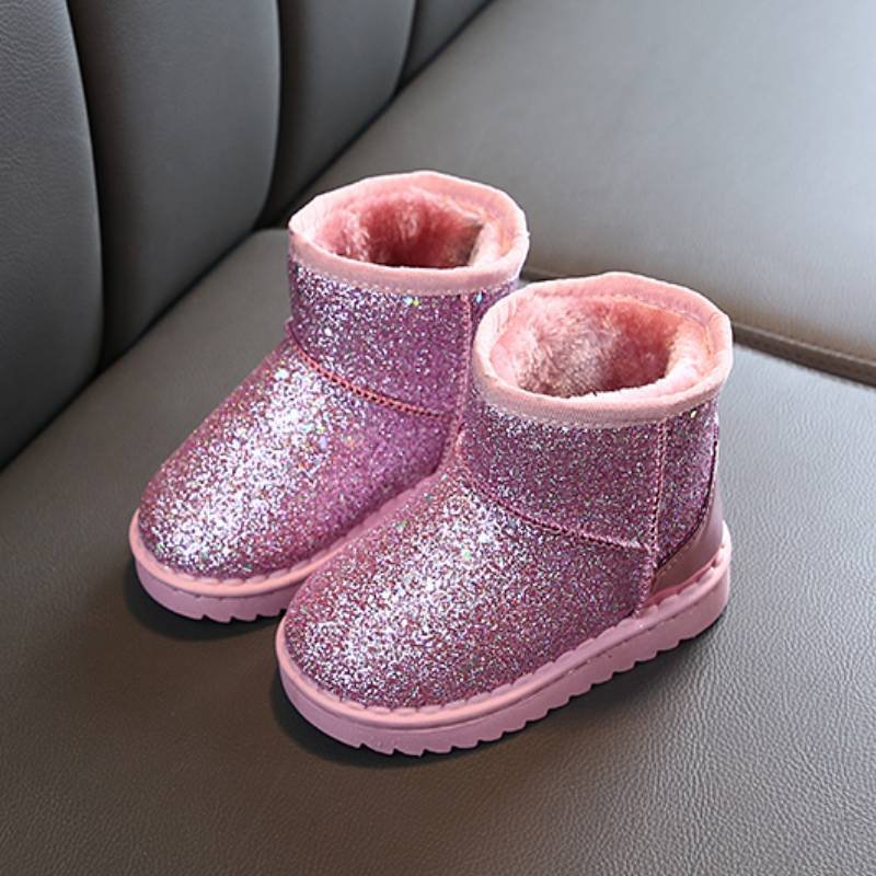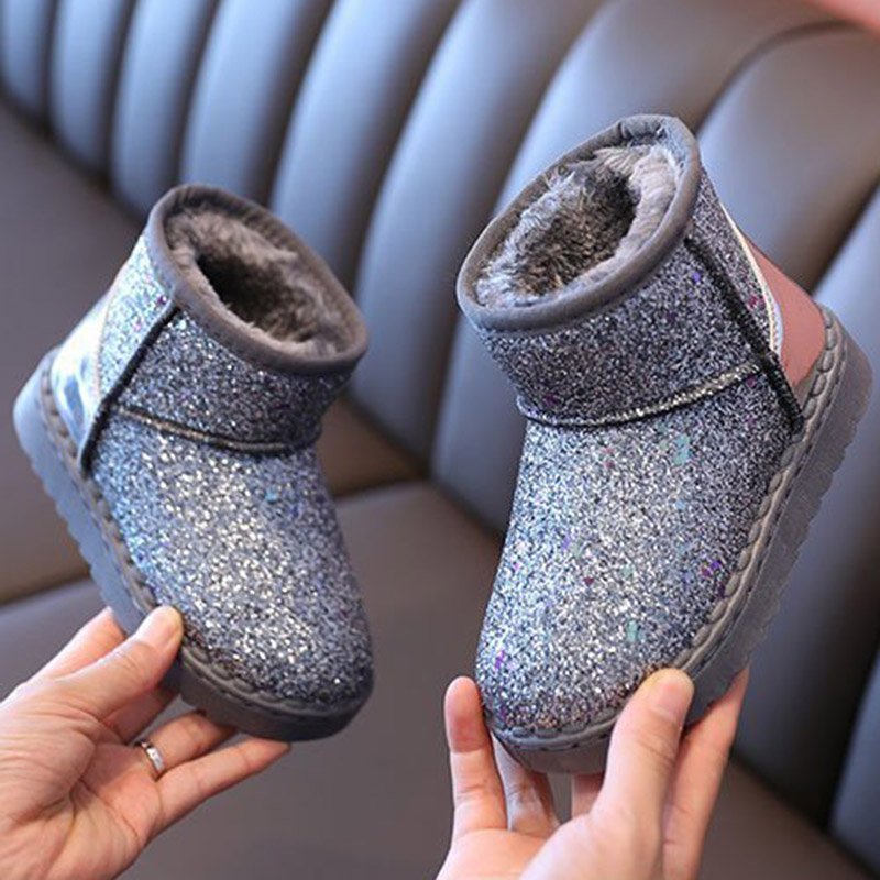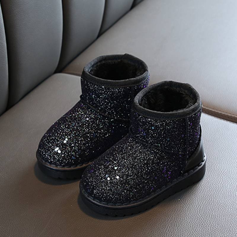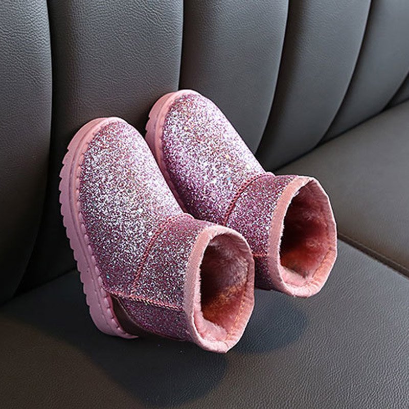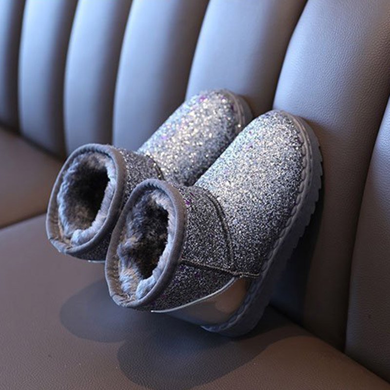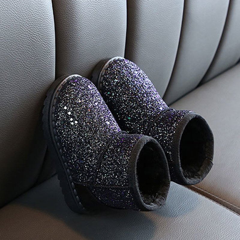 Kids Girls Winter Sequin Design Plush Snow Boots