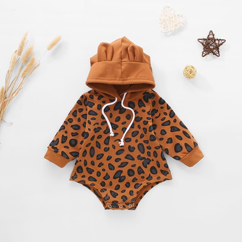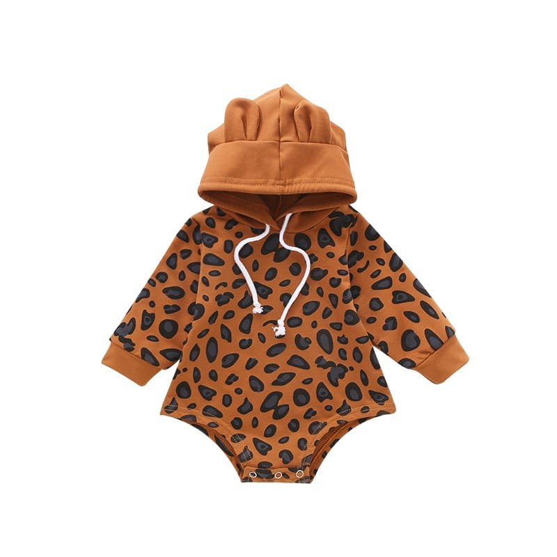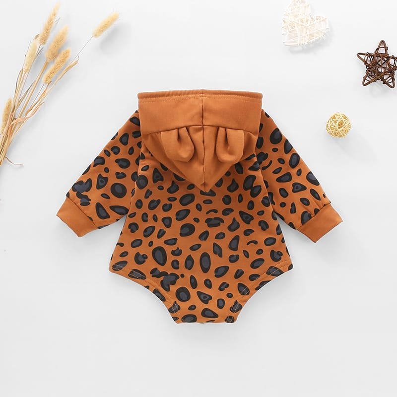 Kids Leopard Printed Bear Ear Design Hooded Romper
