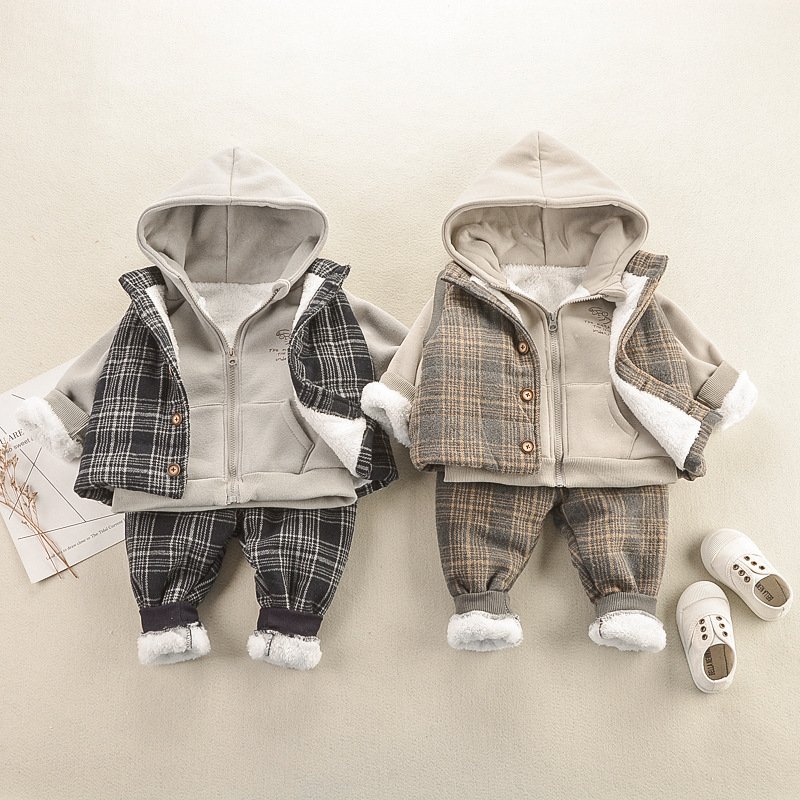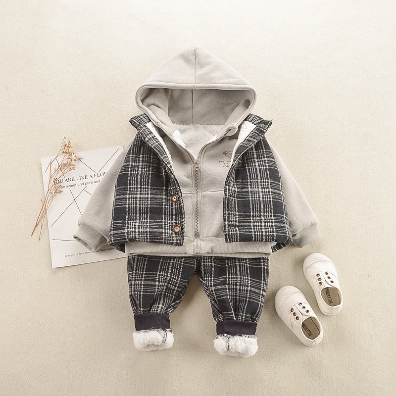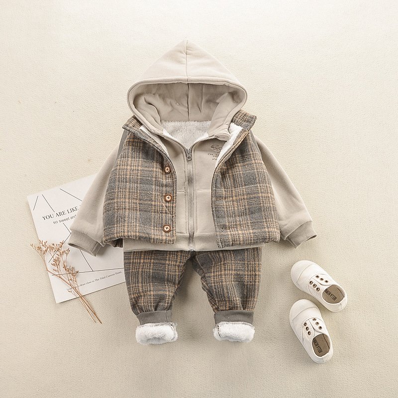 Kids Letter Printed Hooded Tops And Stripe Design Waistcoat And Pants Set