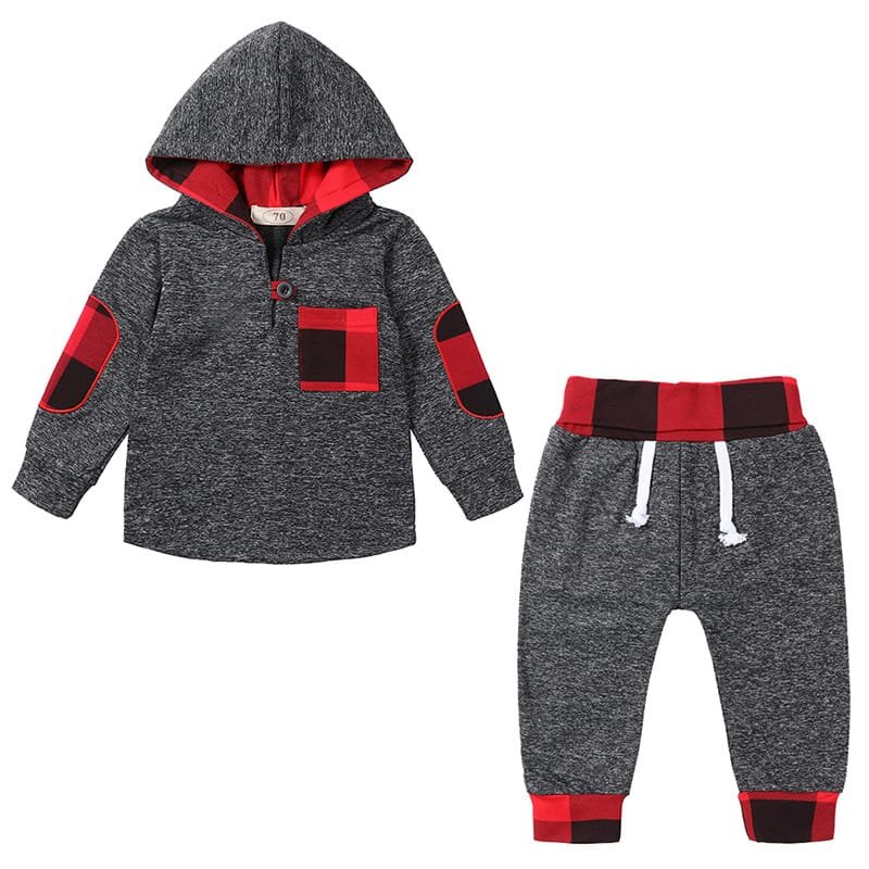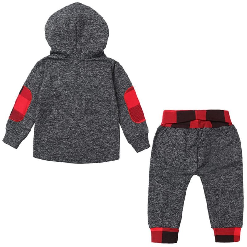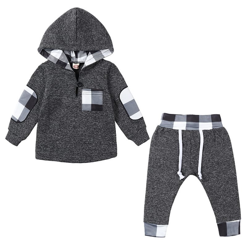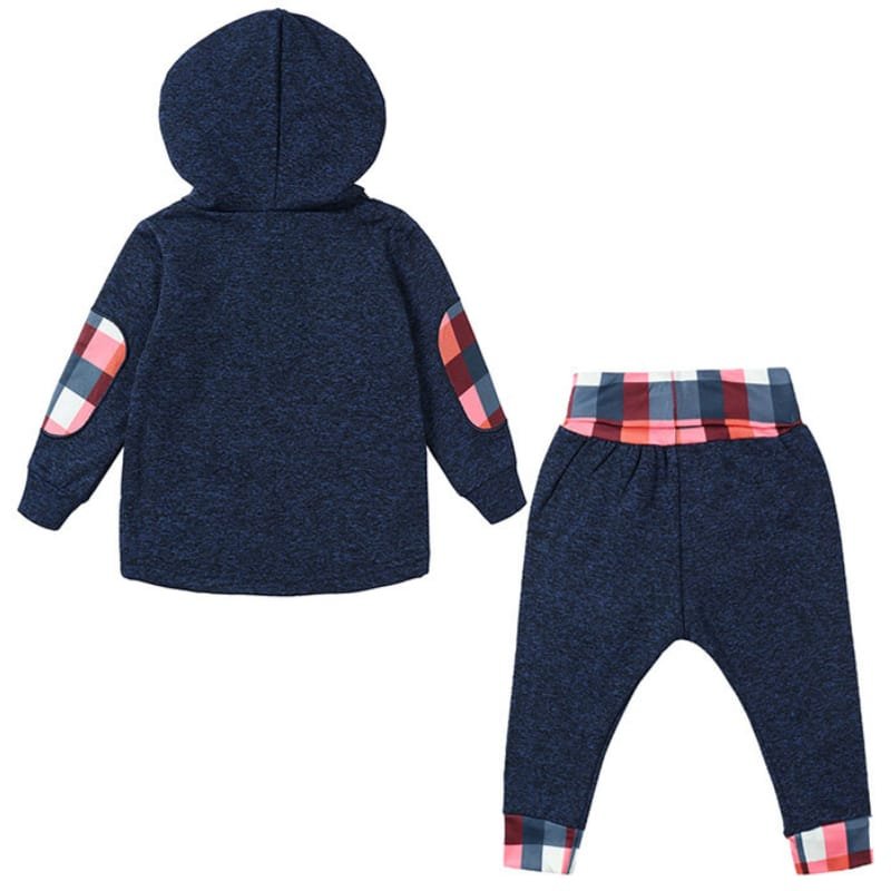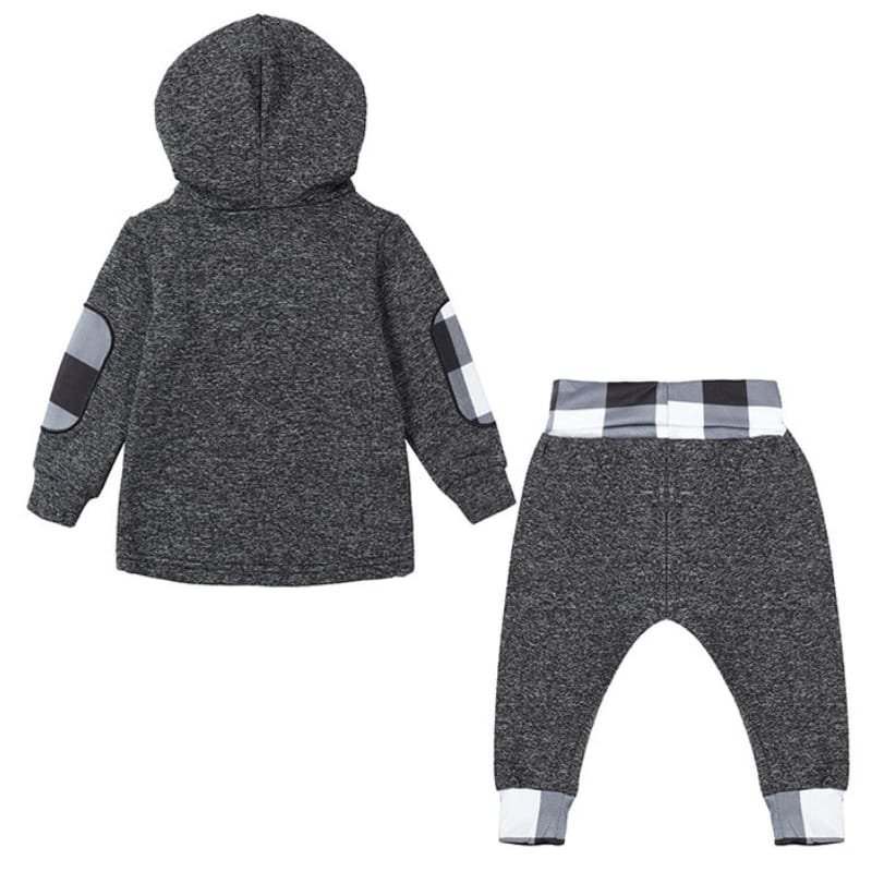 Kids Long-sleeves Hooded Tops And Plaid Pants Set