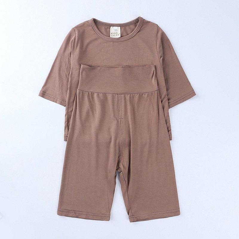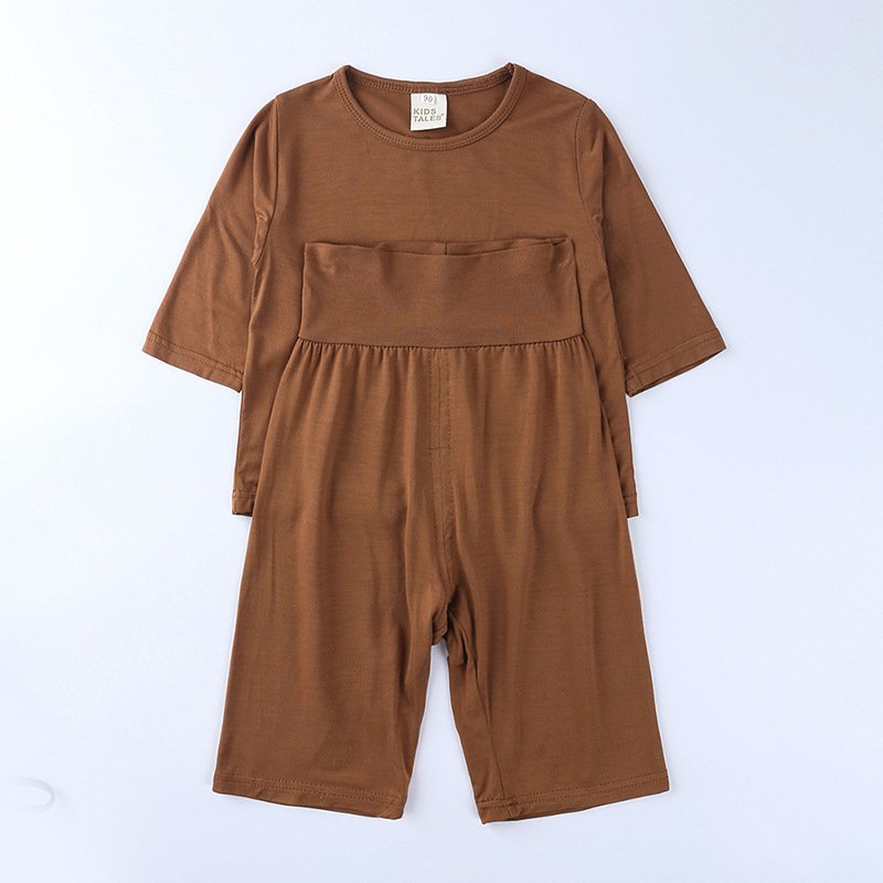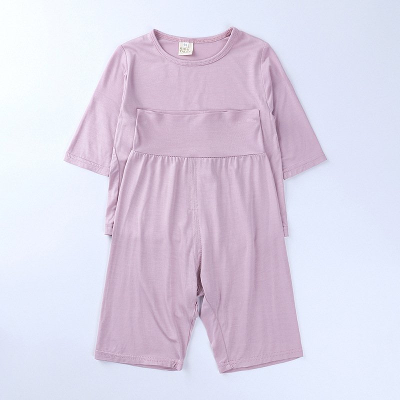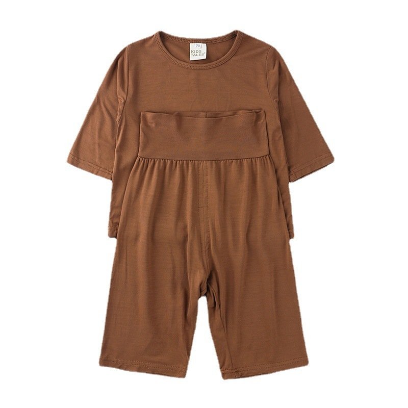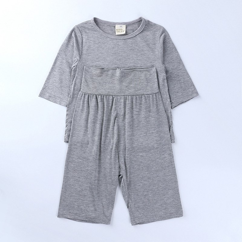 Kids Modal Mid-Sleeves And Trousers Homewear Pajamas Belly Protection Children’s Set