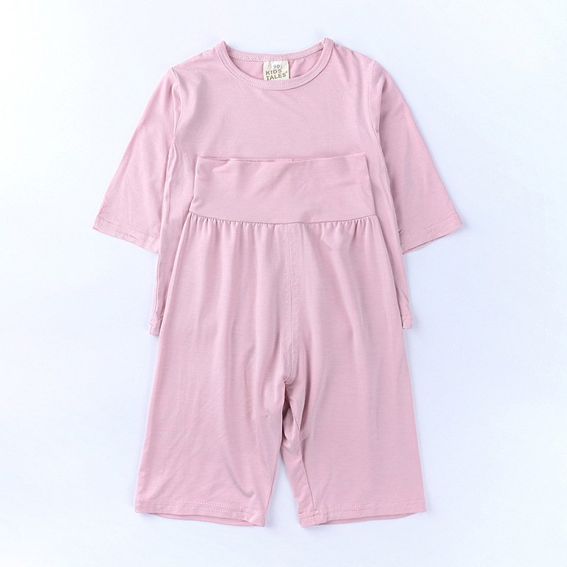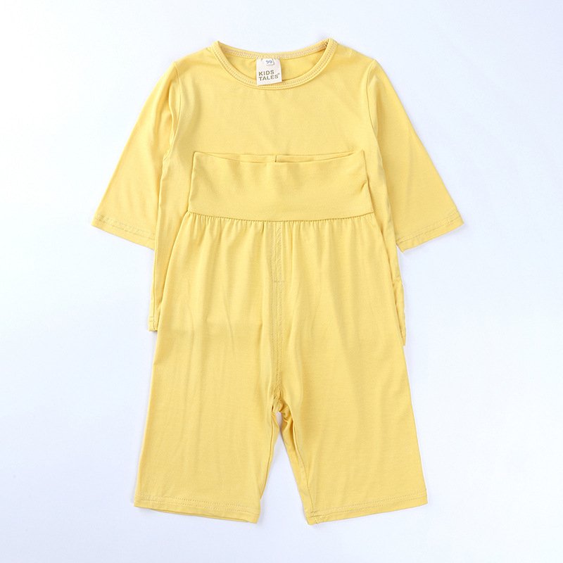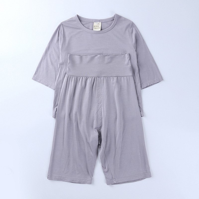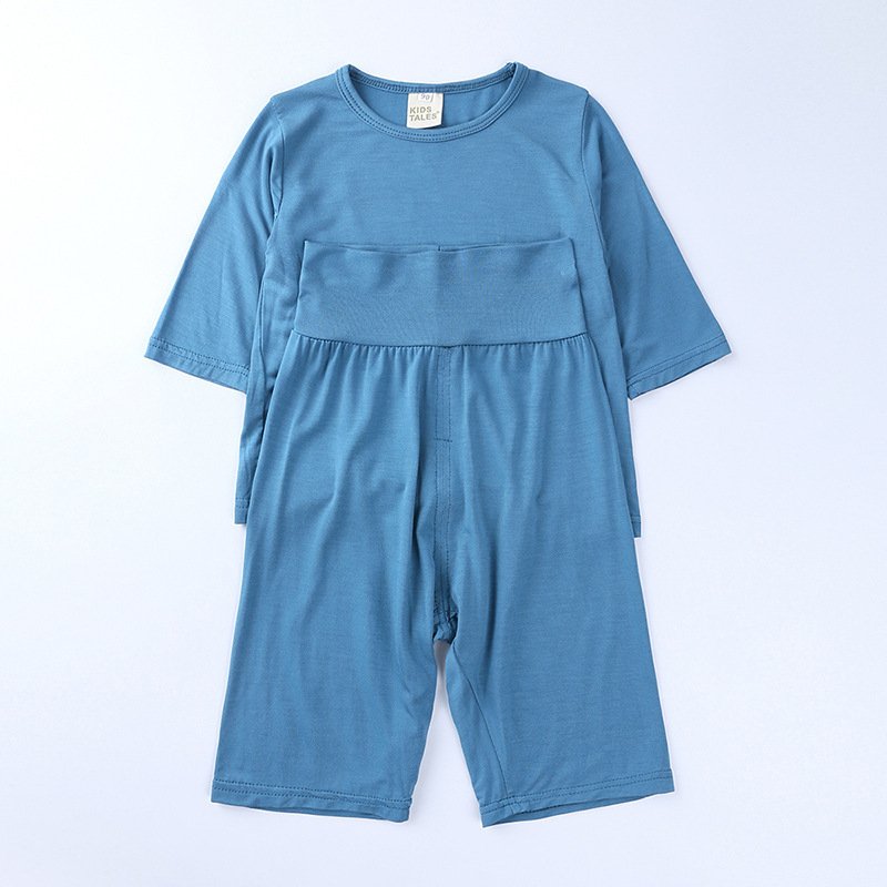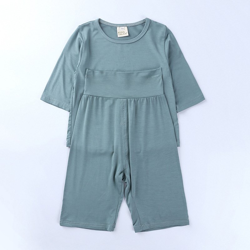 Kids Modal Mid-Sleeves And Trousers Homewear Pajamas Belly Protection Children’s Set
