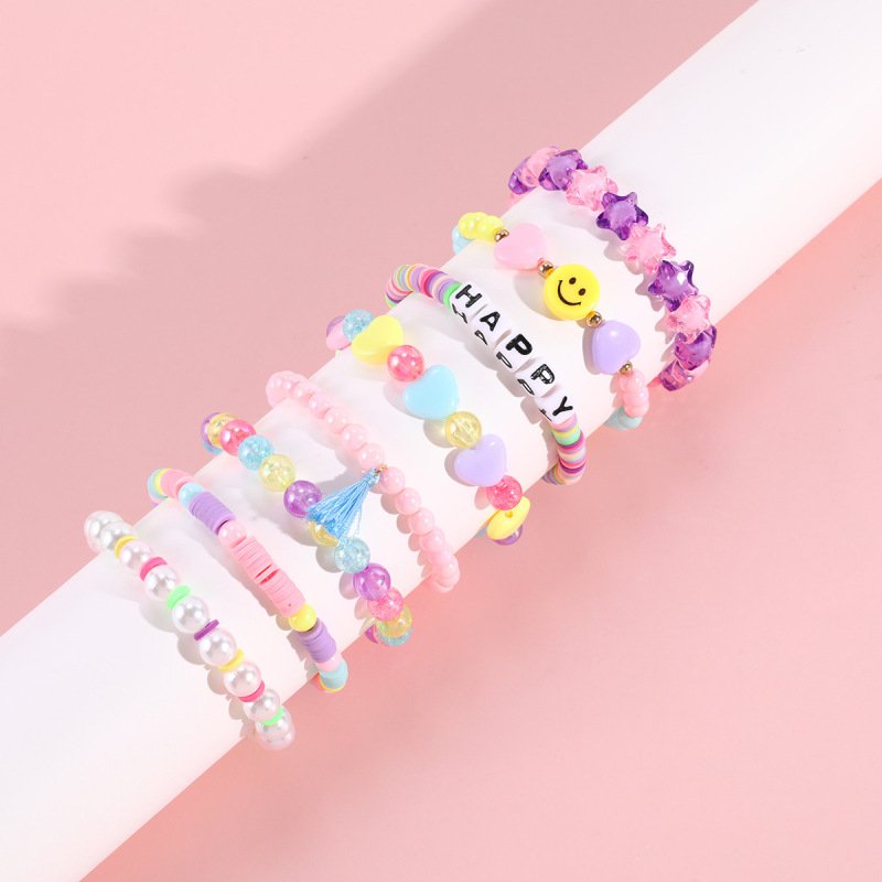 Kids Multicolor Acrylic Beads English Alphabet 8 Optional Player Beaded Bracelets Jewelry