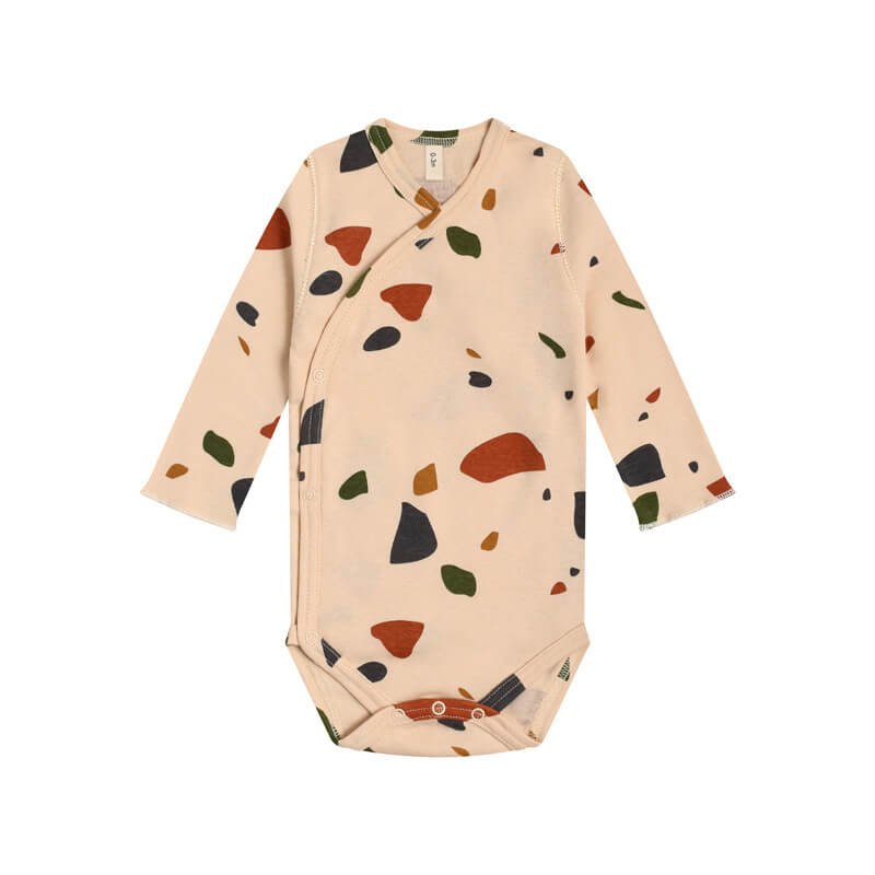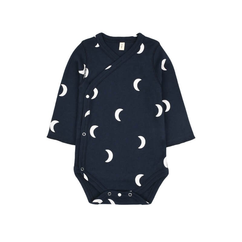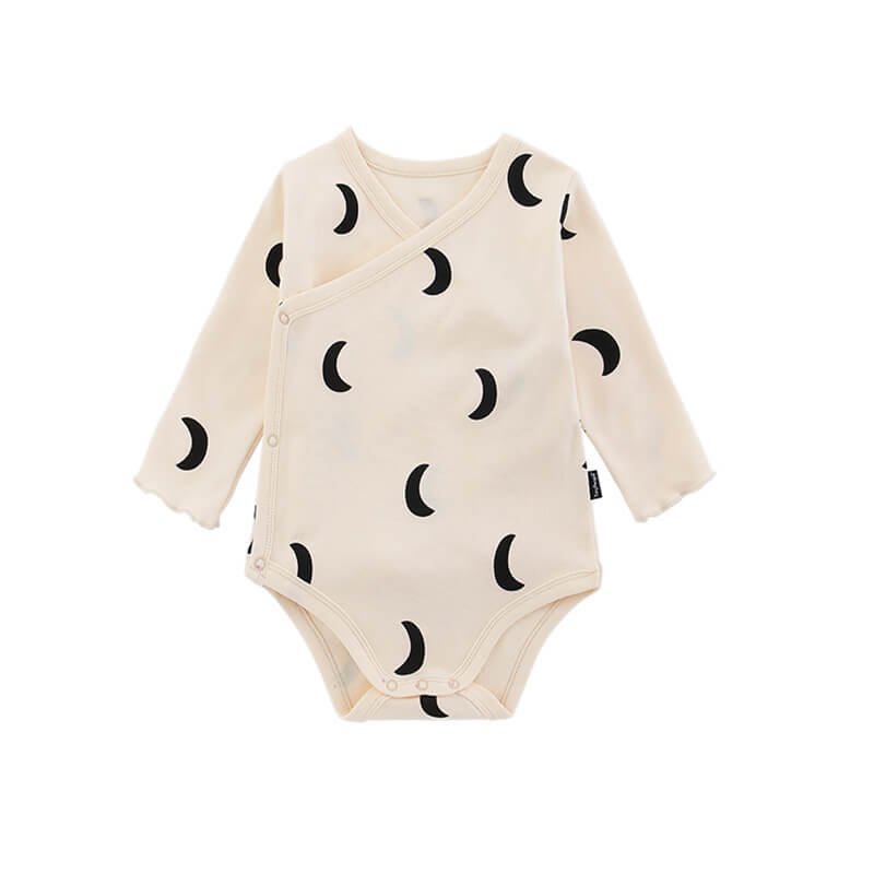 Kids Olive Color Stone Crescent Moon Pattern Romper
