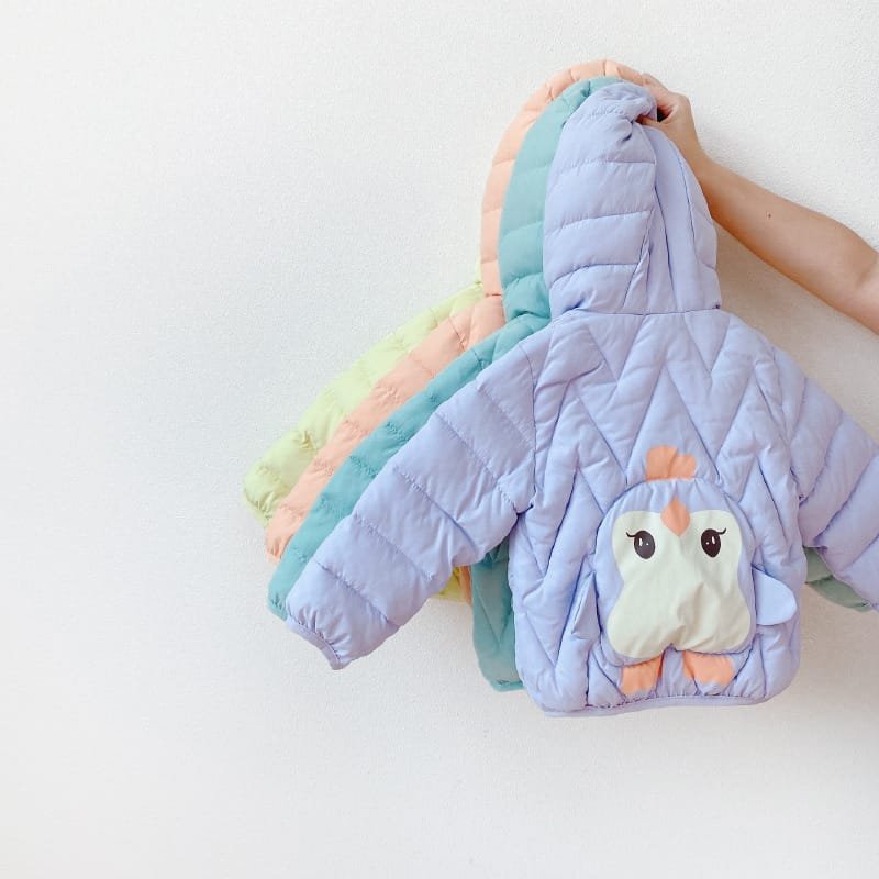Kids Penguin Pattern Letter Printed Hooded Quilted Jacket