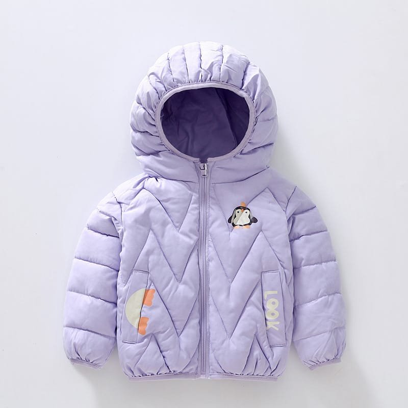 Kids Penguin Pattern Letter Printed Hooded Quilted Jacket