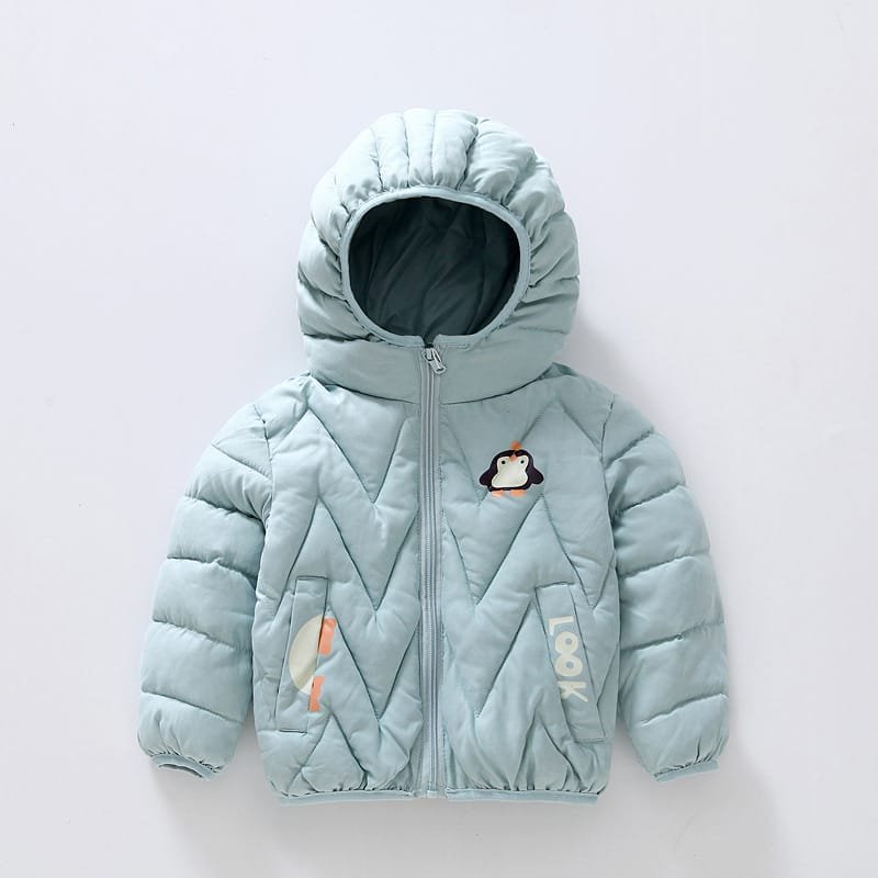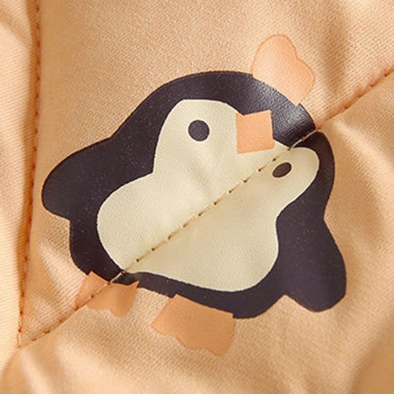 Kids Penguin Pattern Letter Printed Hooded Quilted Jacket