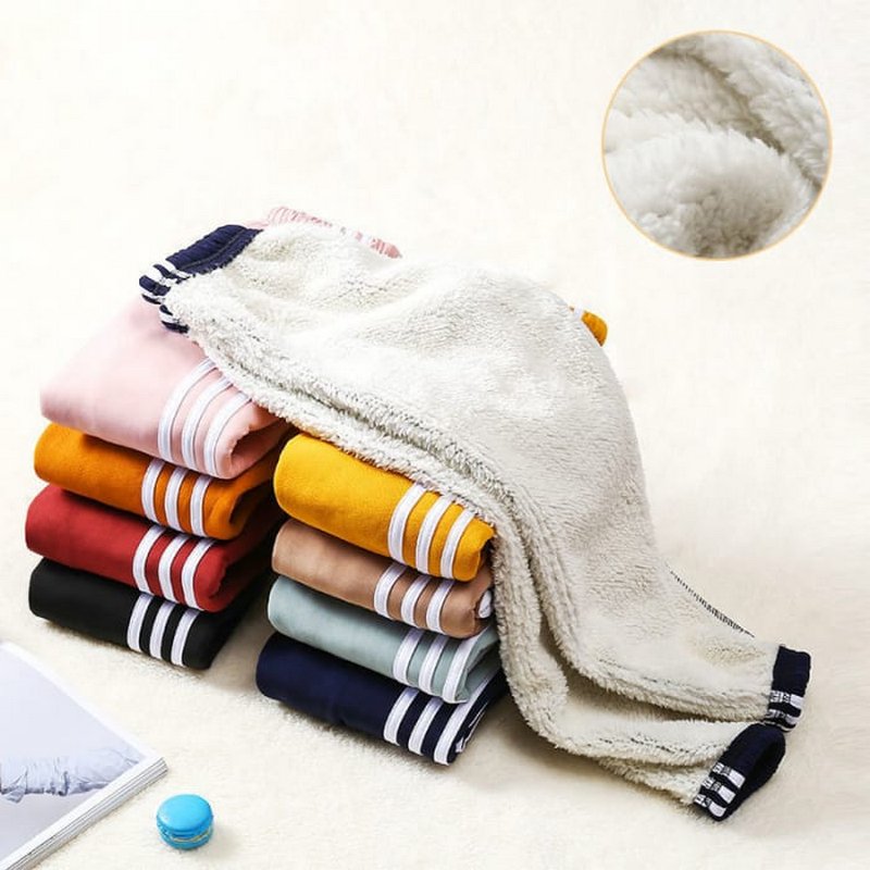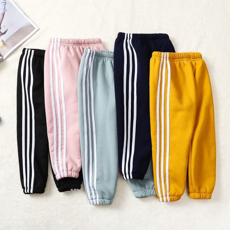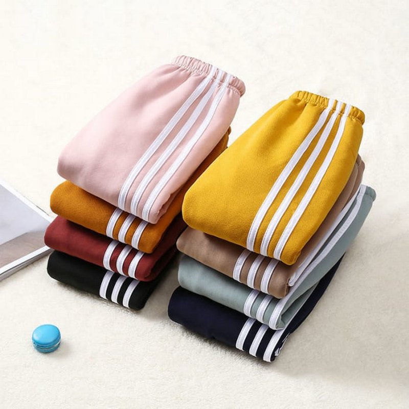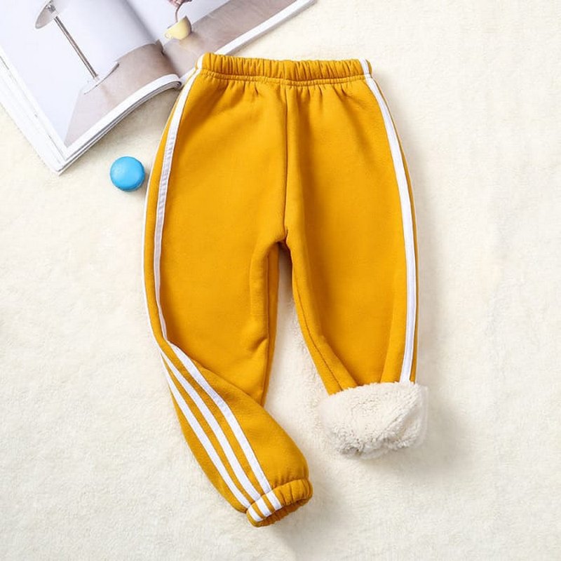 Kids Pure Color Stripe Design Thickened Jogger Pants