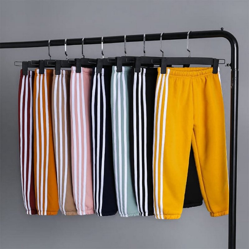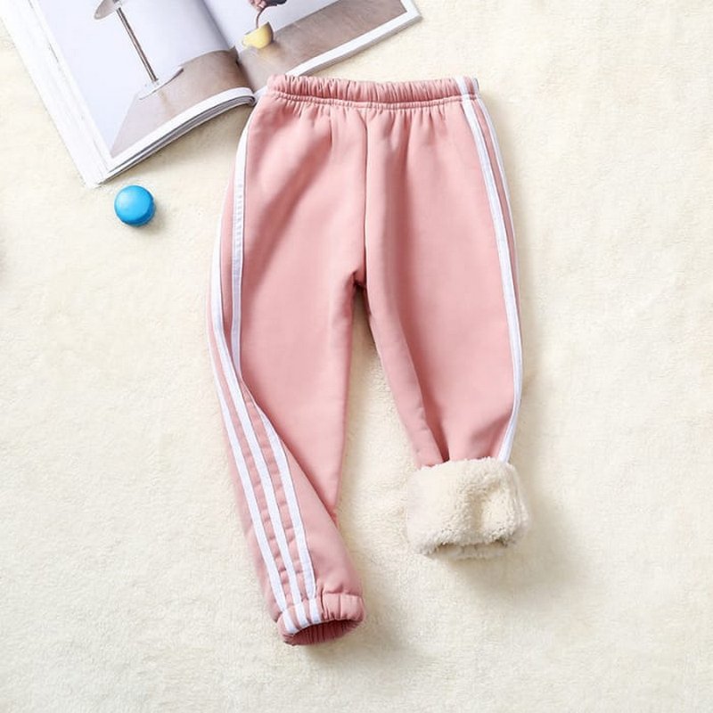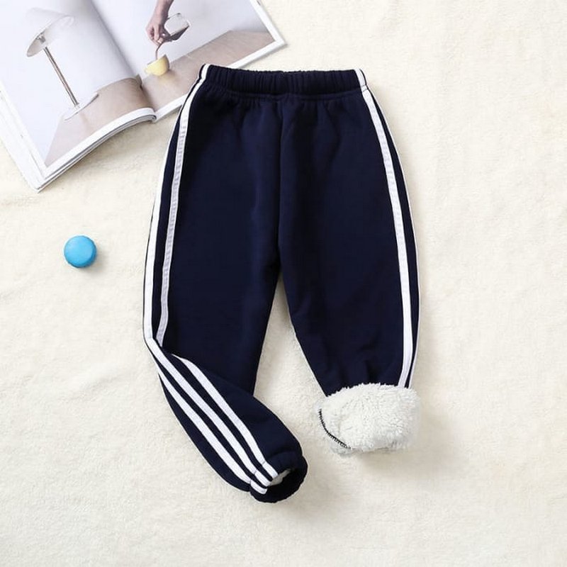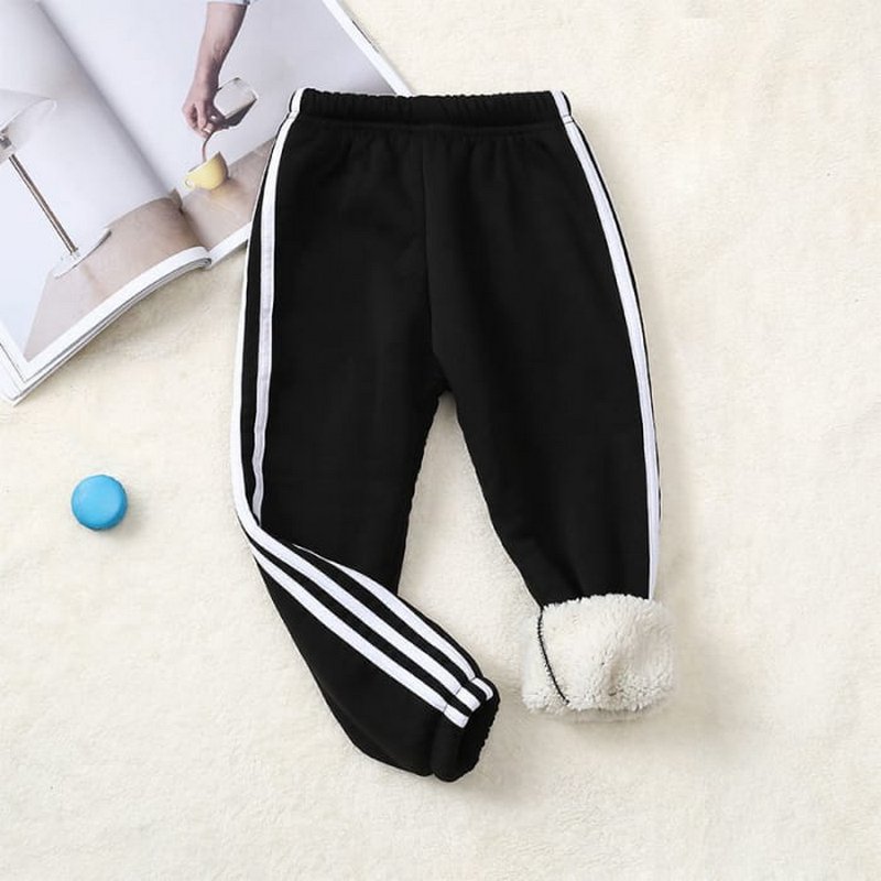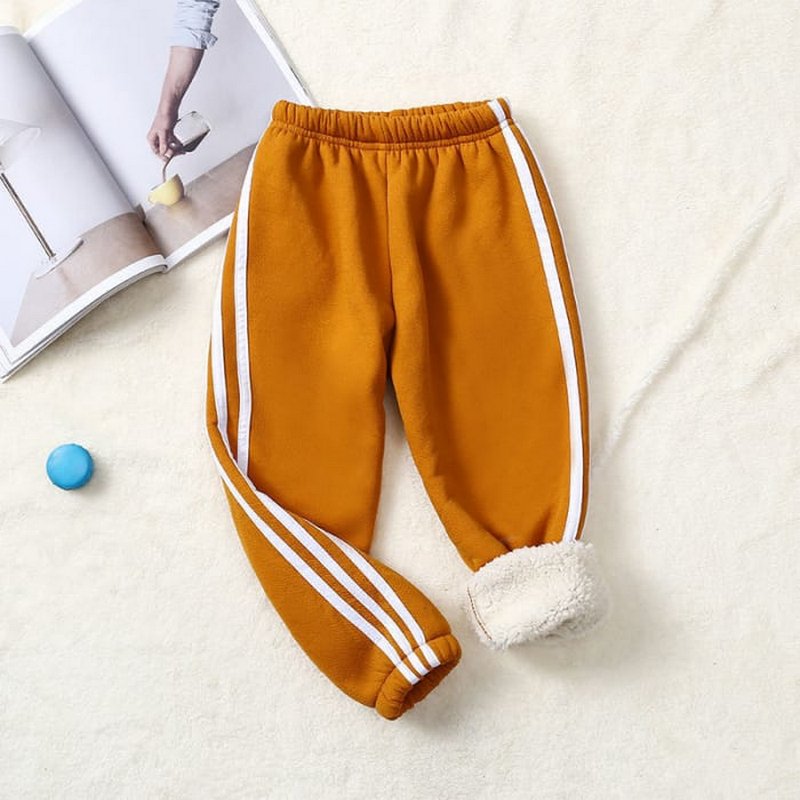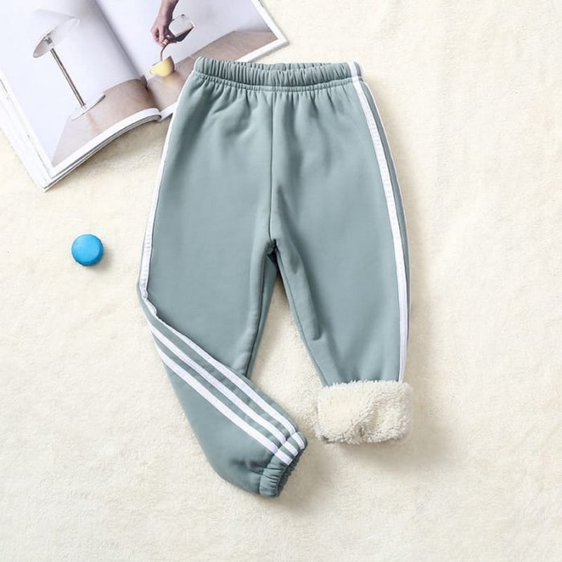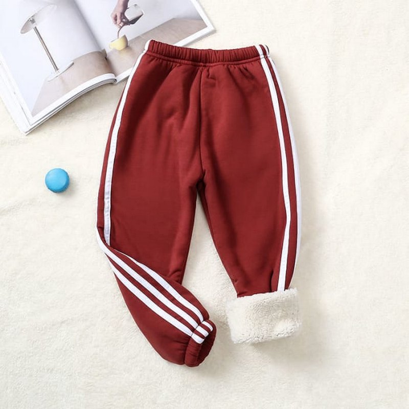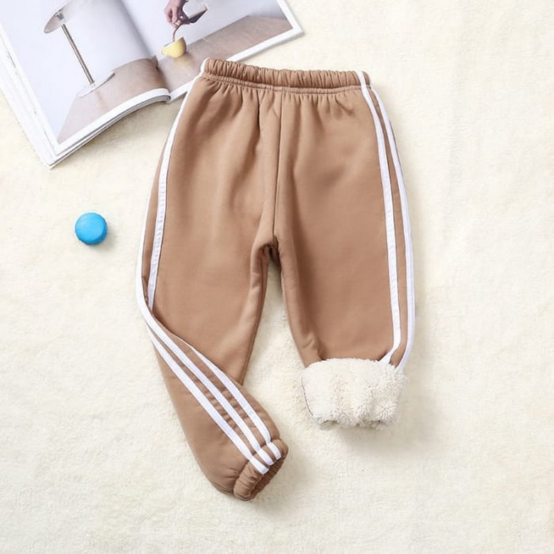 Kids Pure Color Stripe Design Thickened Jogger Pants