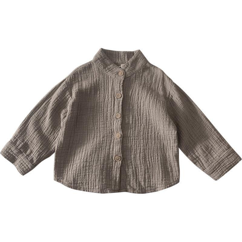 Kids Retro Basic Solid Color Single-breasted Stand Collar Shirt