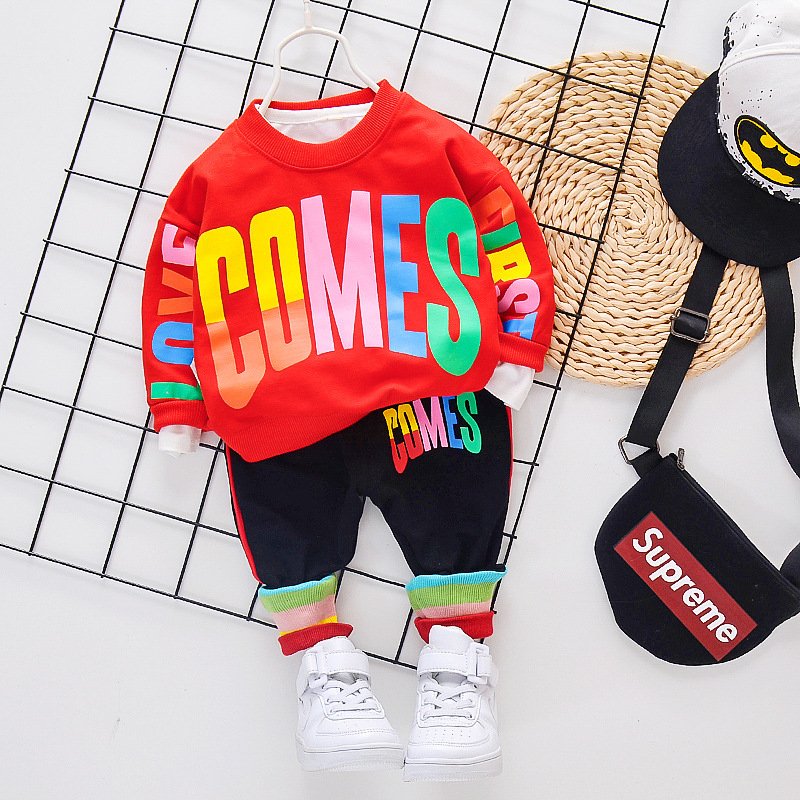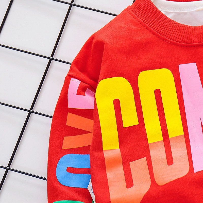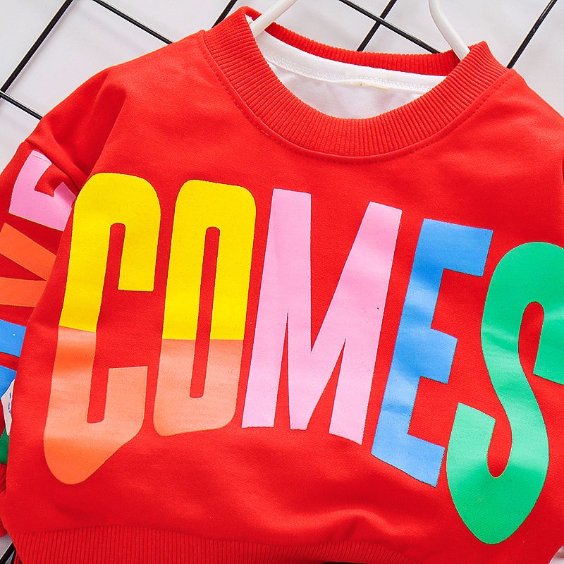 Kids Round Neck Tops And Letter Printed Pants Two-piece Set