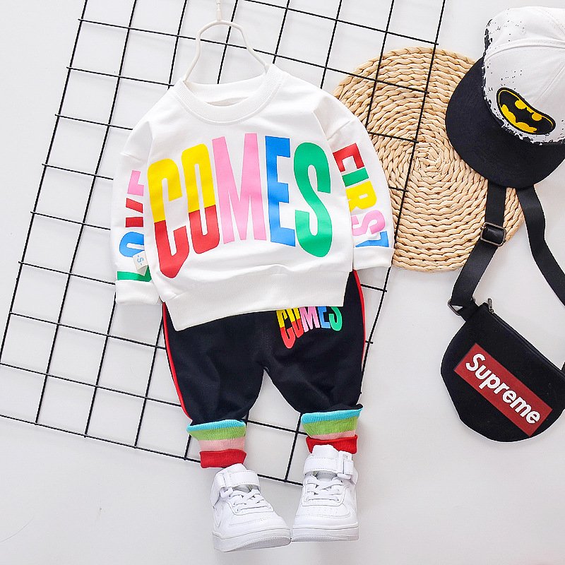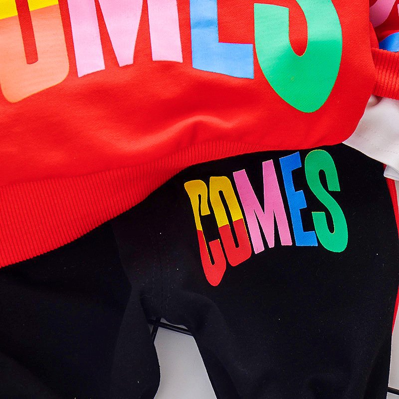 Kids Round Neck Tops And Letter Printed Pants Two-piece Set