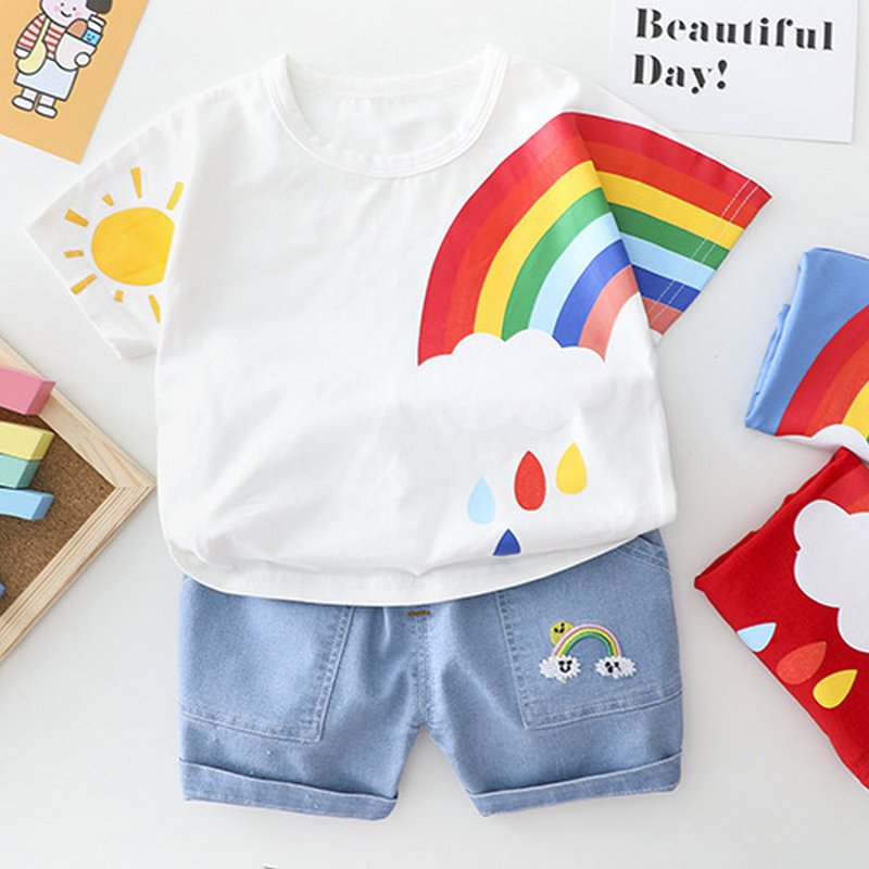 Kids Short Sleeve Rainbow Casual Short Sleeve Suit