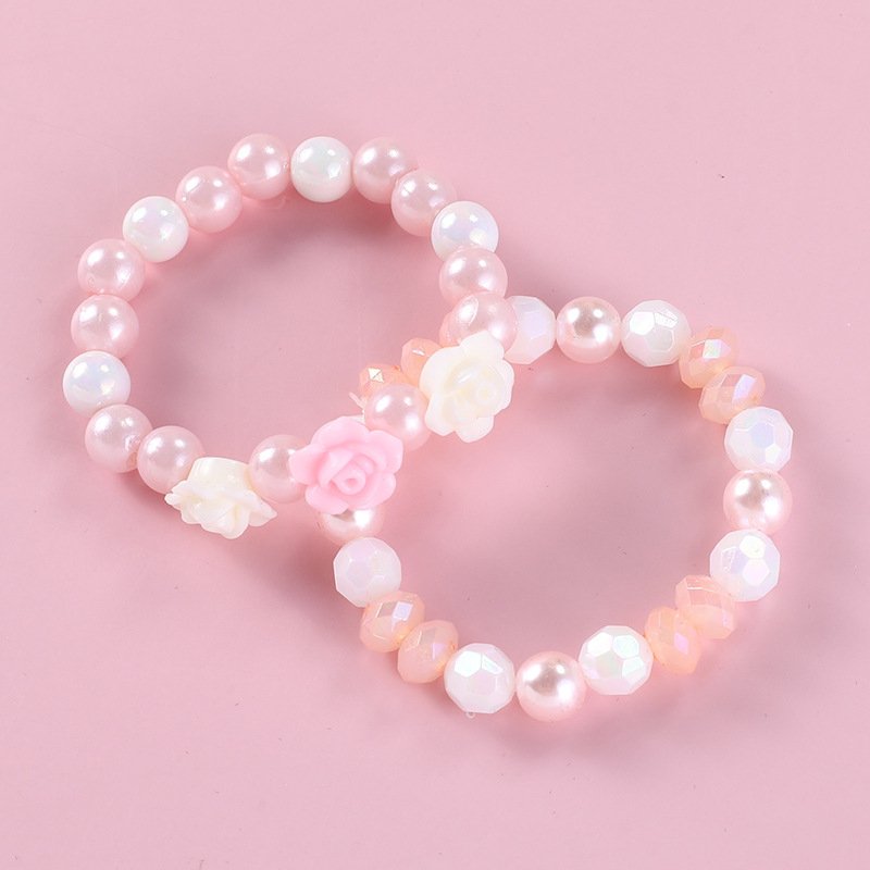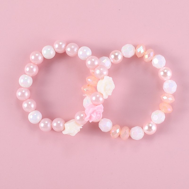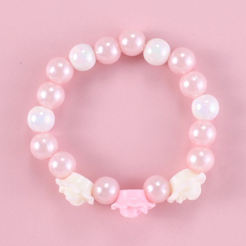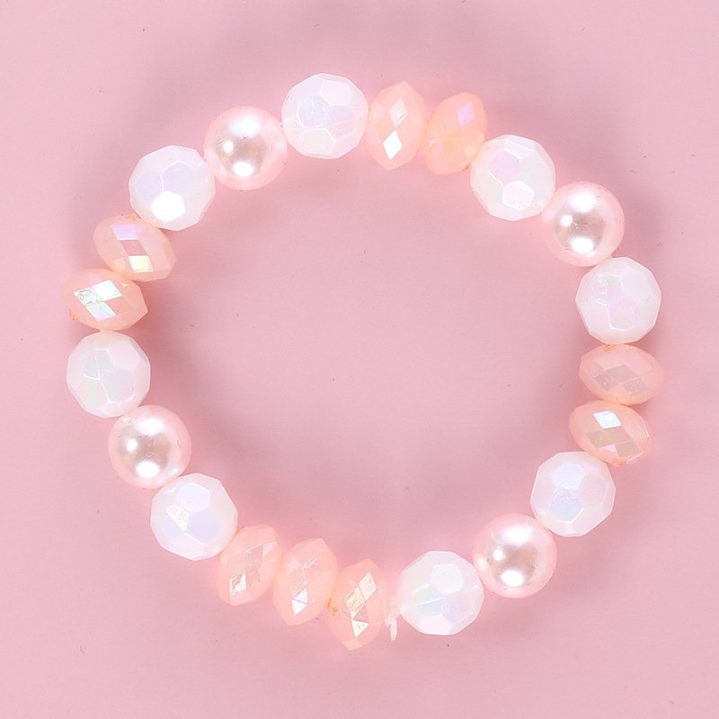 Kids Simple Acrylic Beads Plastic Beaded Pink Bracelet Jewelry
