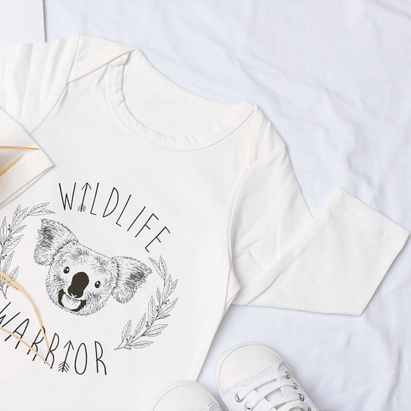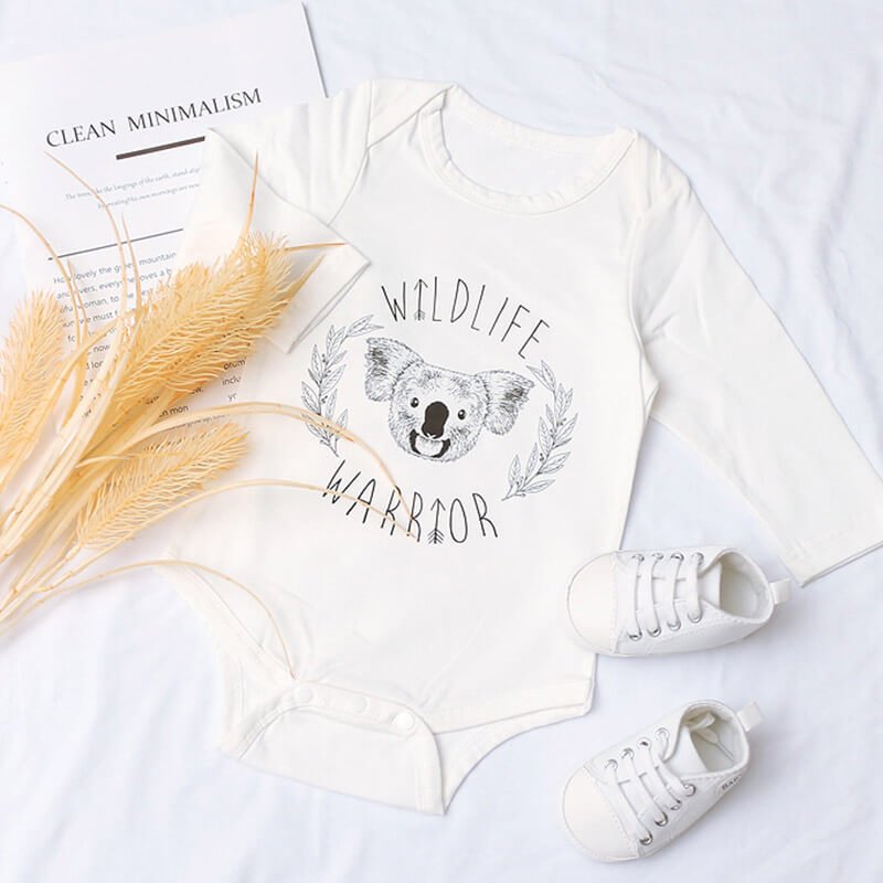 Kids Simple Animal Letter Pattern Long-sleeves Romper