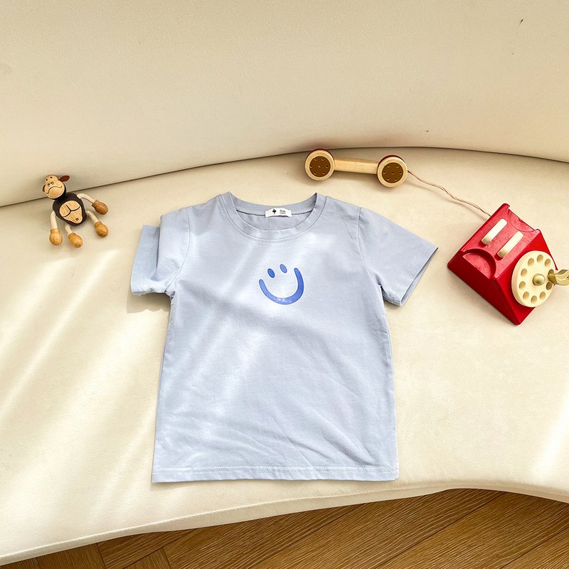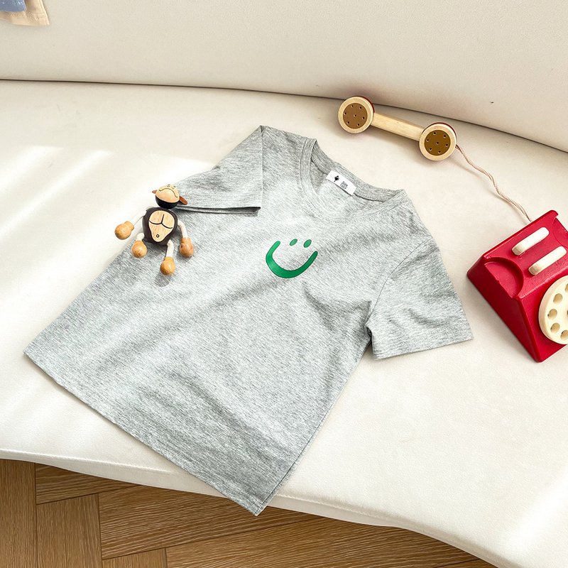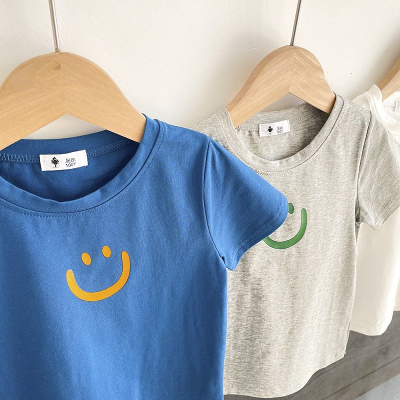 Kids Simple Smile Pattern Round Neck Short Sleeve Loose Casual T-Shirt