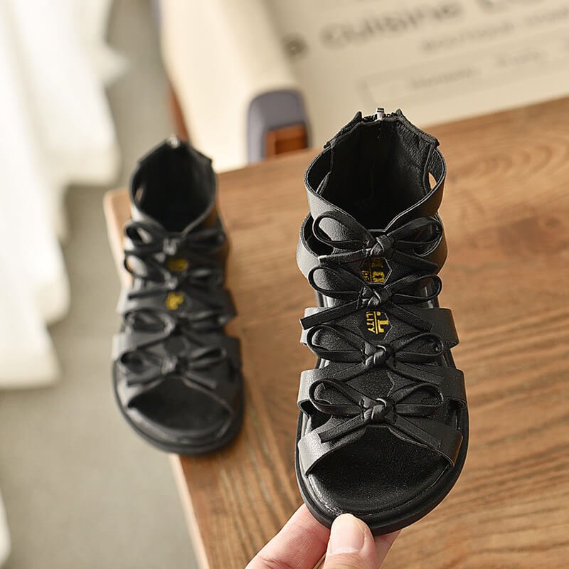 Kids Simple Solid Color Bow Sandals
