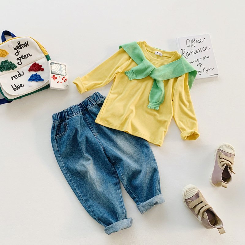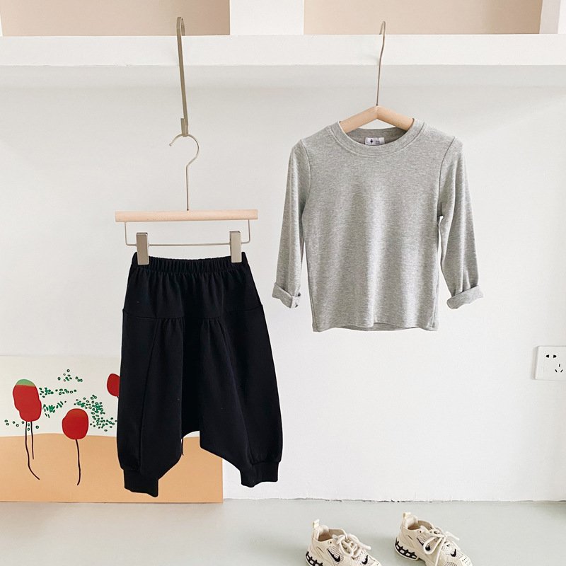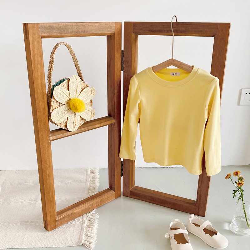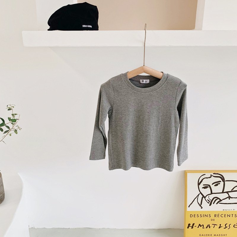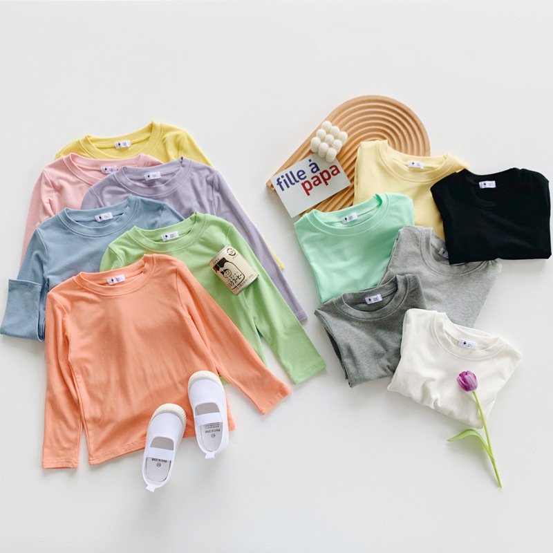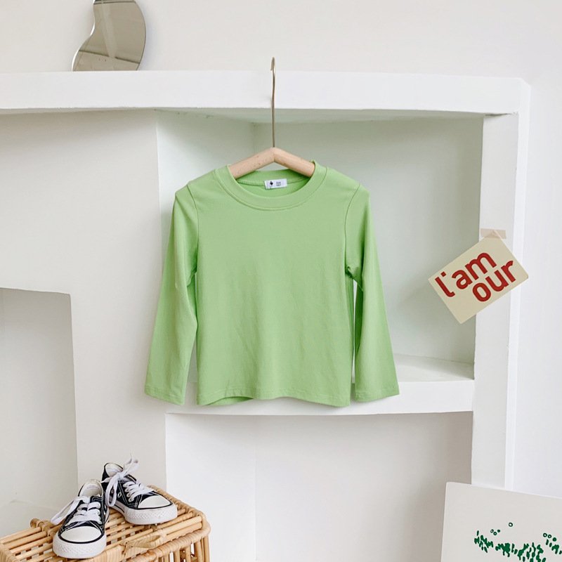 Kids Simple Solid Color Round Neck Long Sleeve Base Shirt