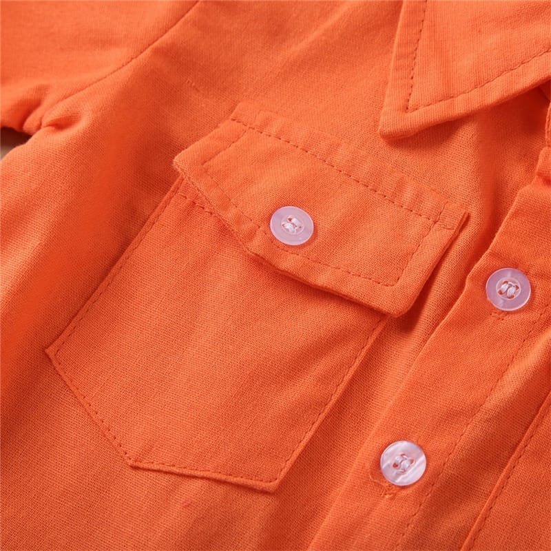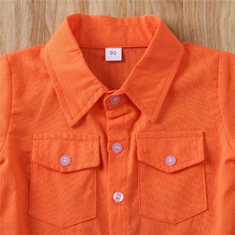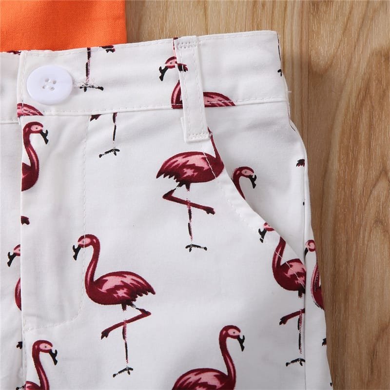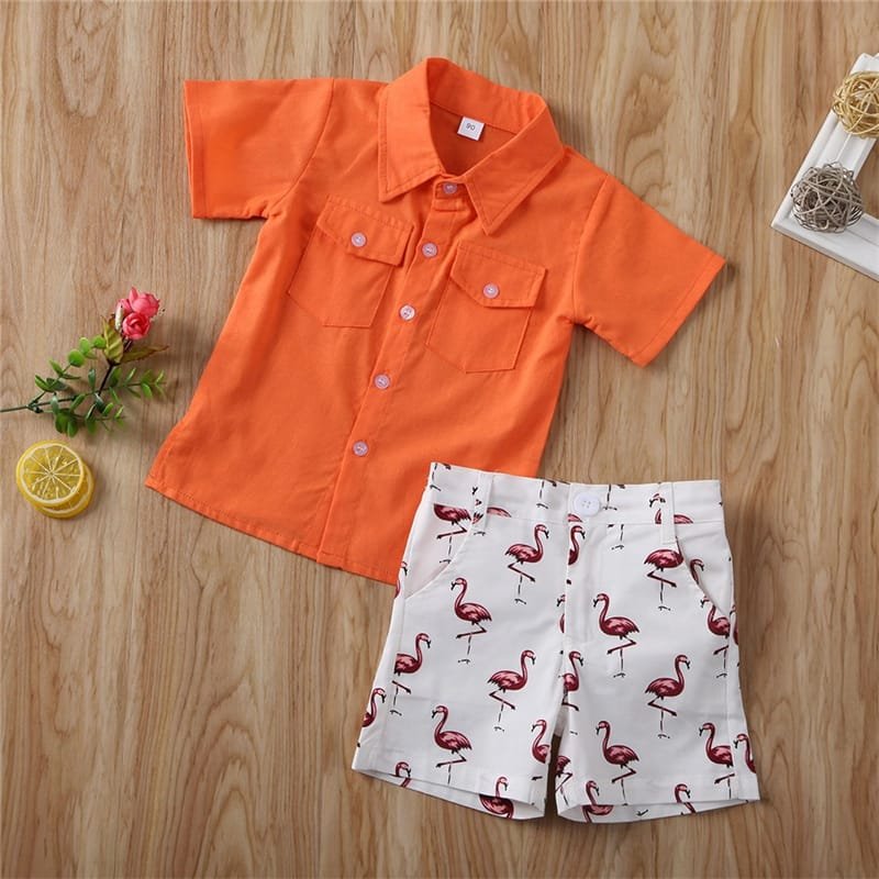 Kids Single-breasted Short-sleeved Shirt And Flamingo Pattern Shorts Set