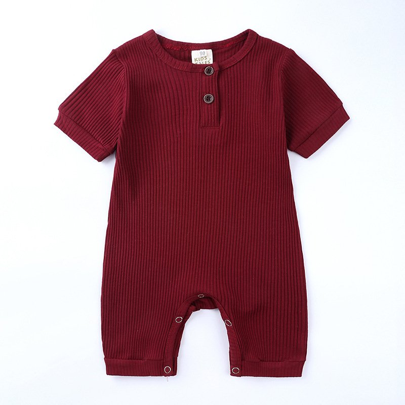 Kids Solid Color Bodysuit Short Sleeve Pit Strip Romper