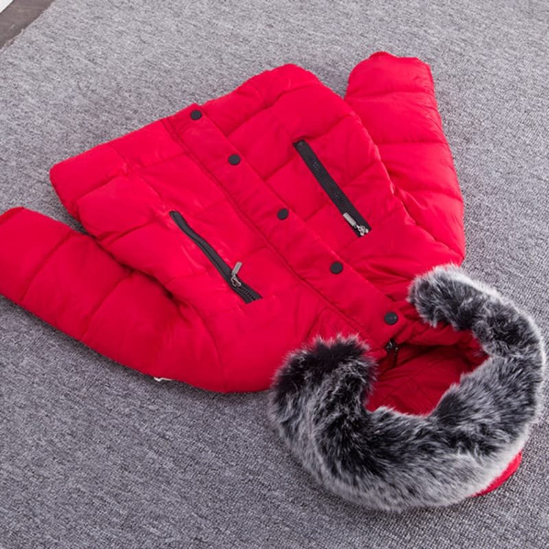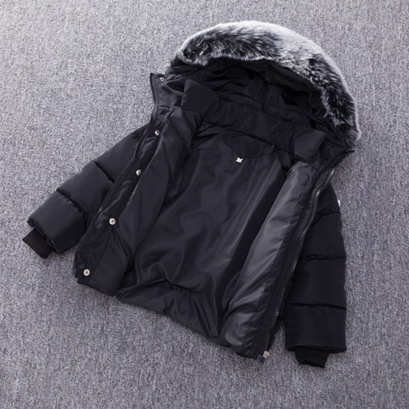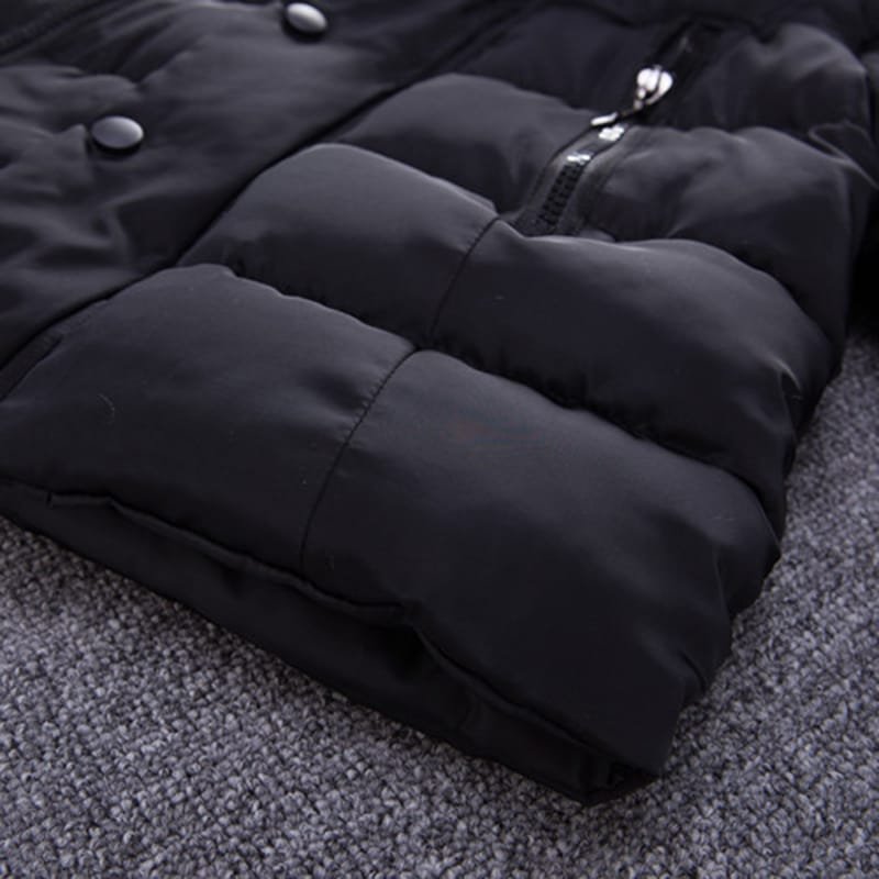 Kids Solid Color Single Row Button Hooded Quilted Jacket