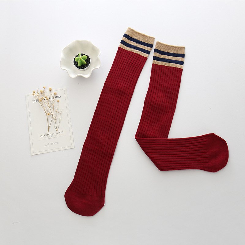 Kids Solid Color Stripe Over-The-Knee Socks