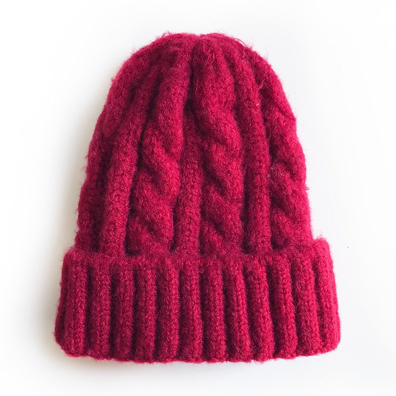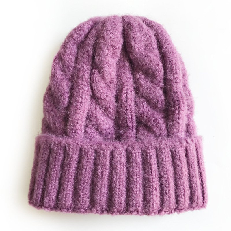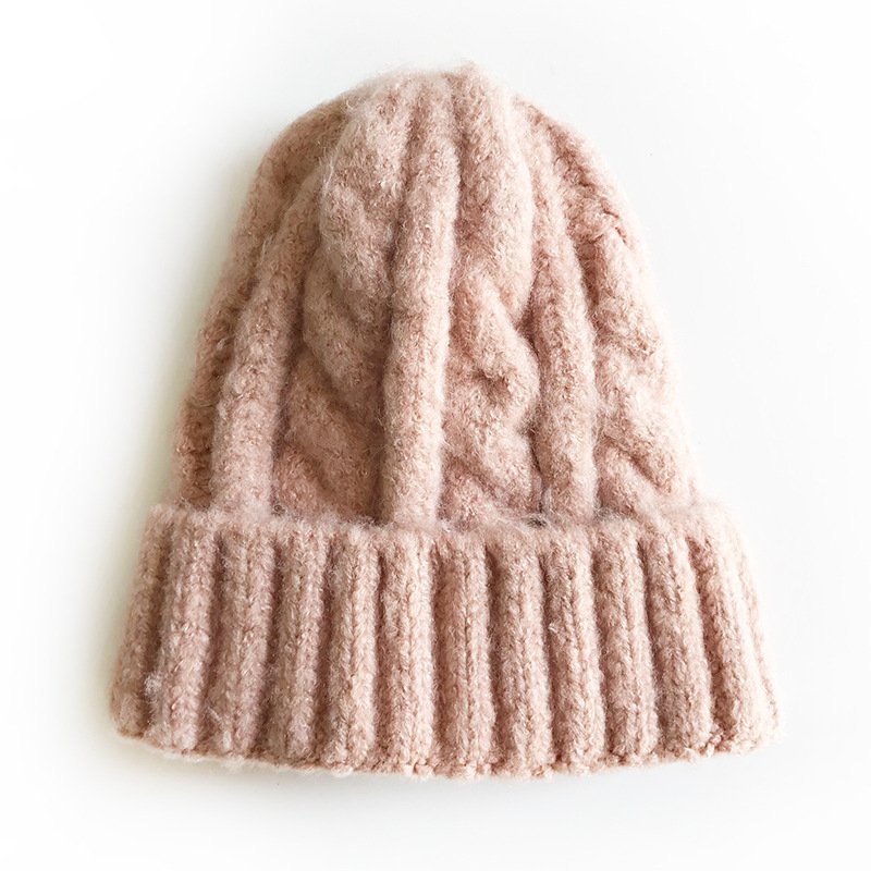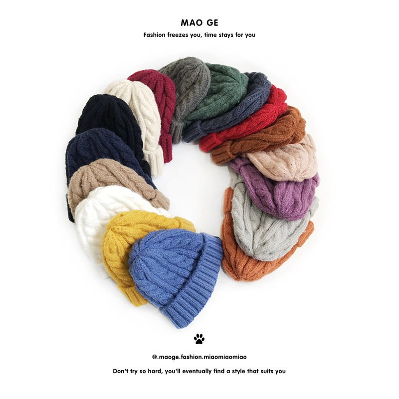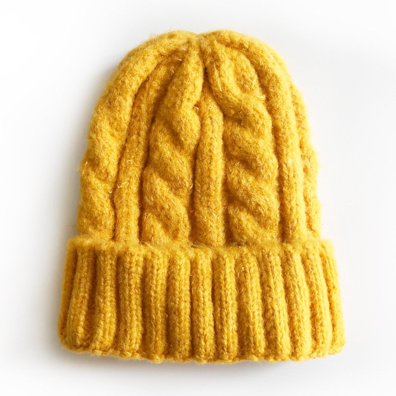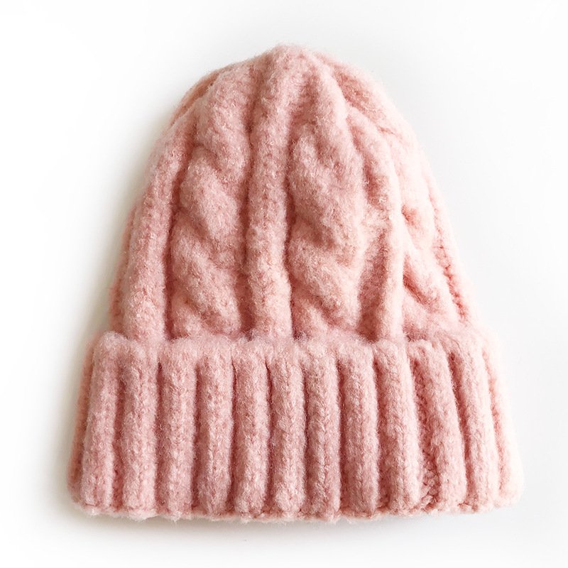 Kids Solid Color Thickening Elastic Twist Woolen Knitted Hat