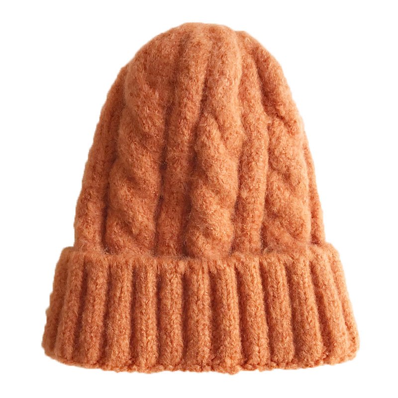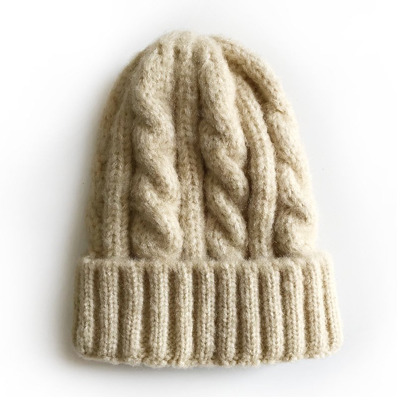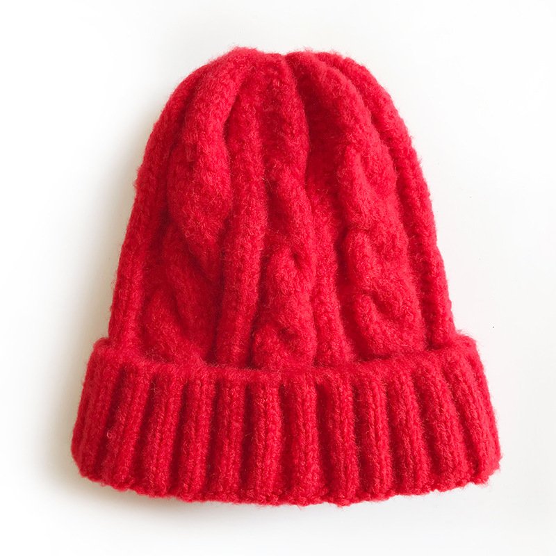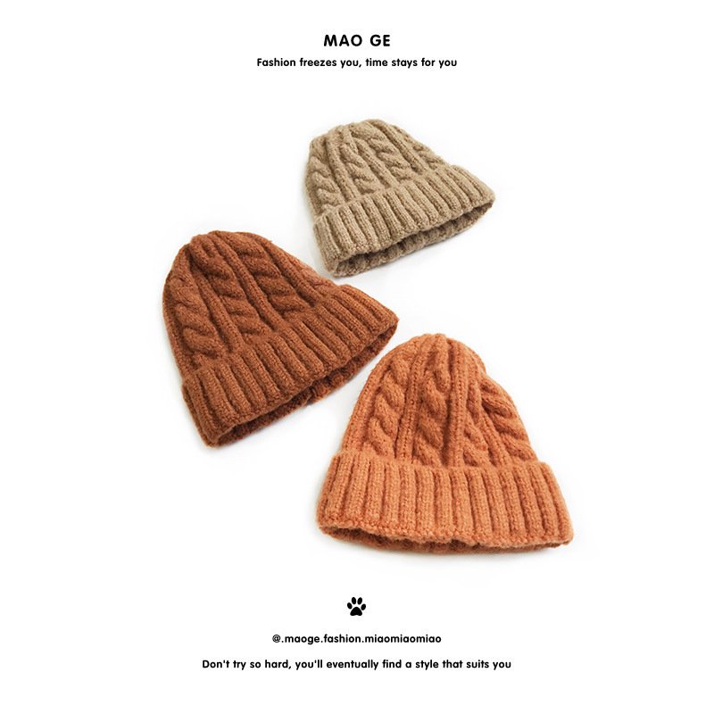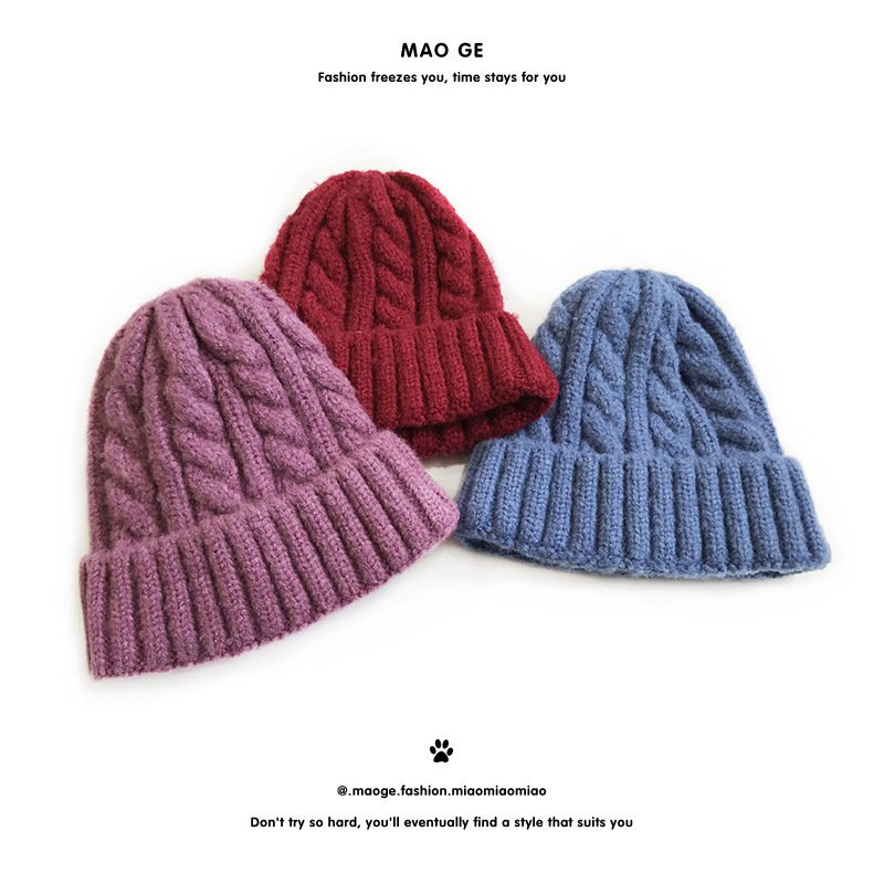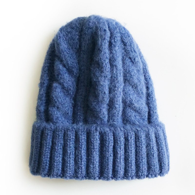Kids Solid Color Thickening Elastic Twist Woolen Knitted Hat
