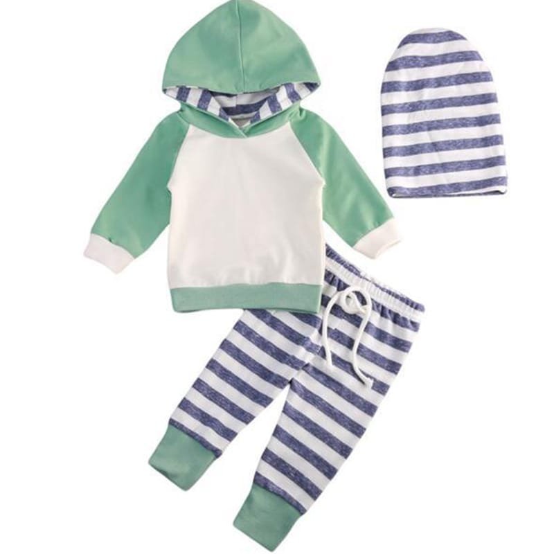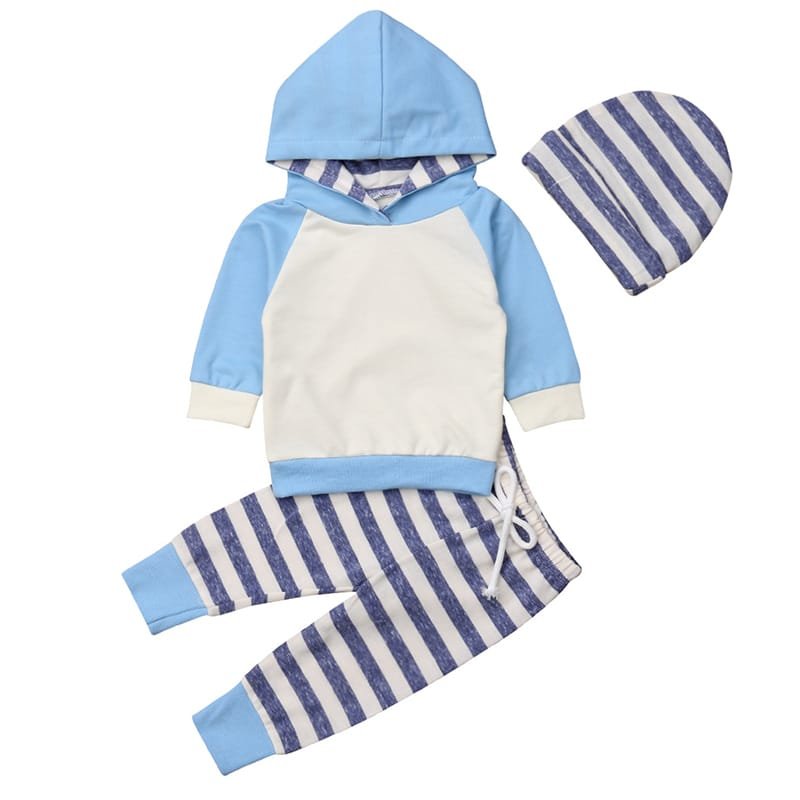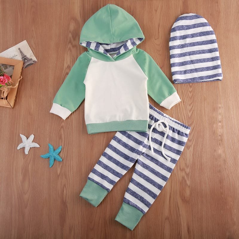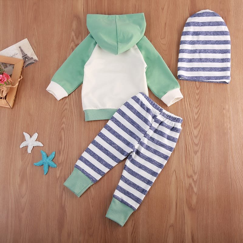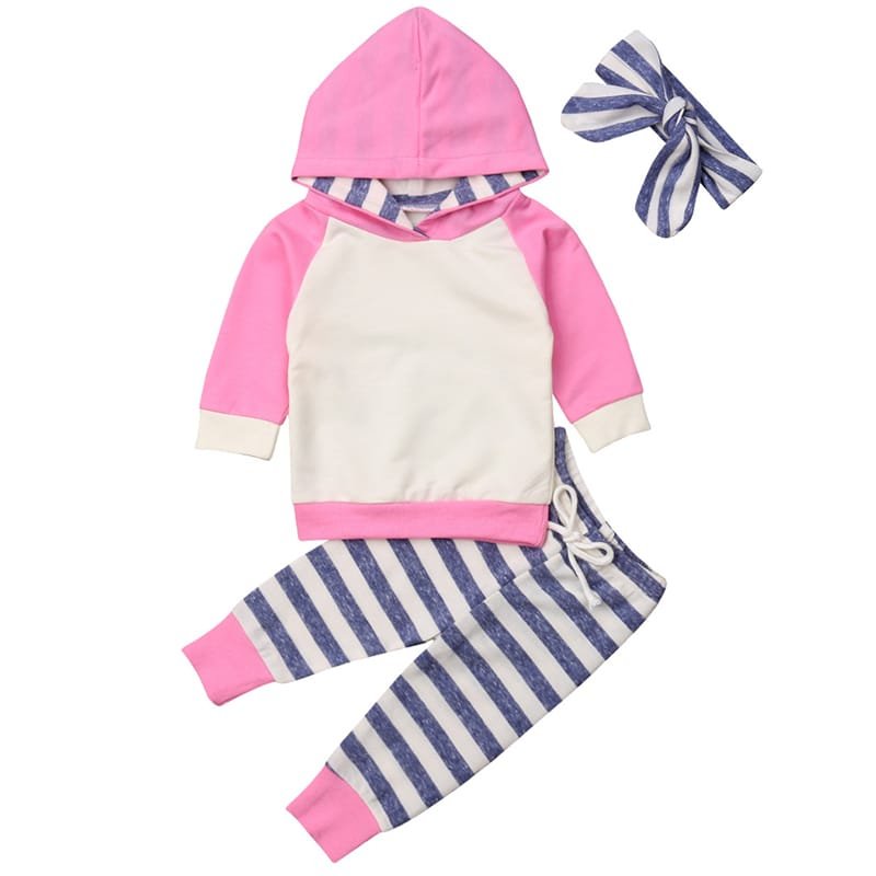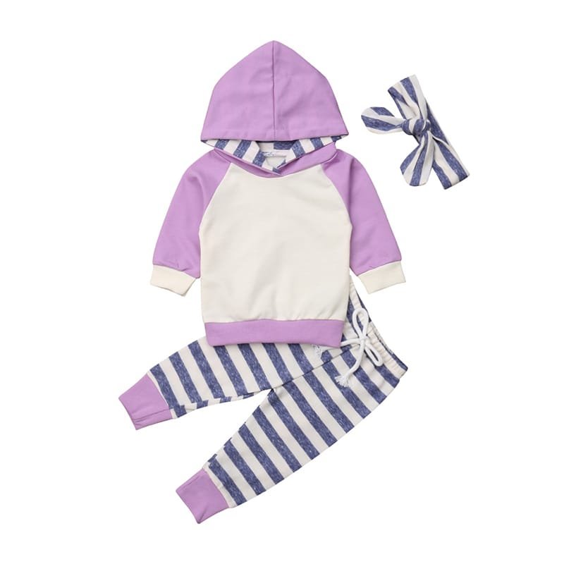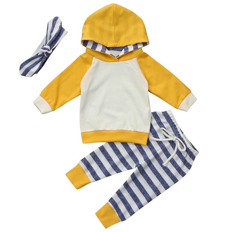 Kids Splice Hooded Tops And Stripe Pants With Headband Three-piece Set