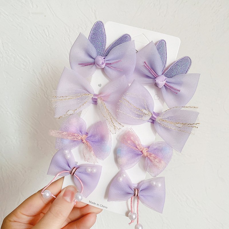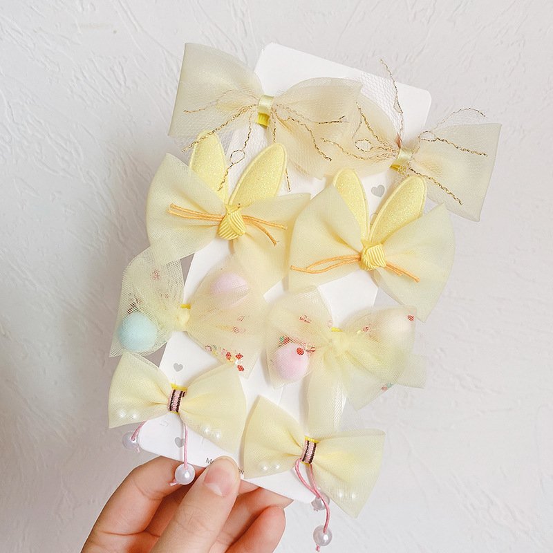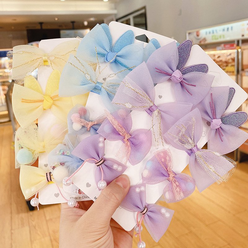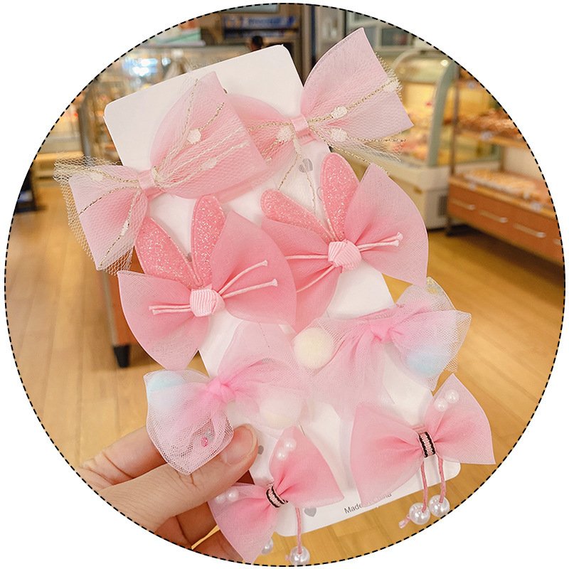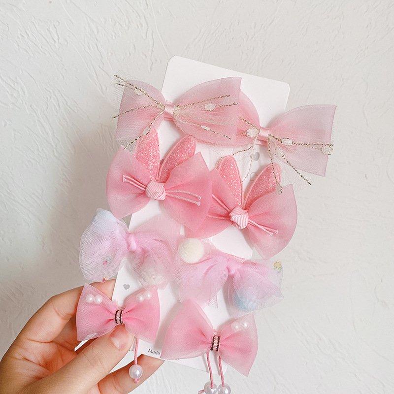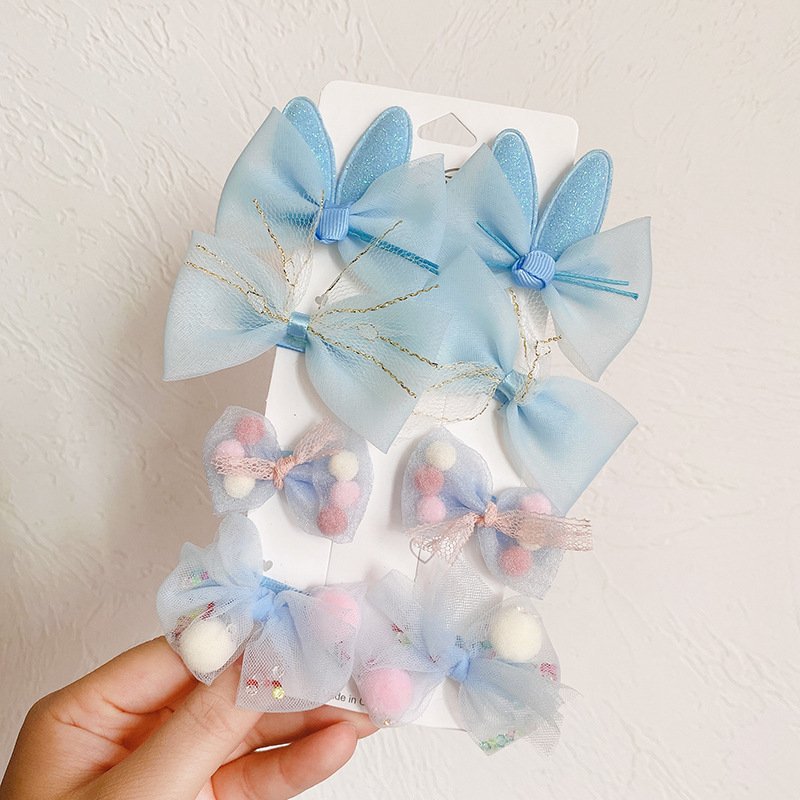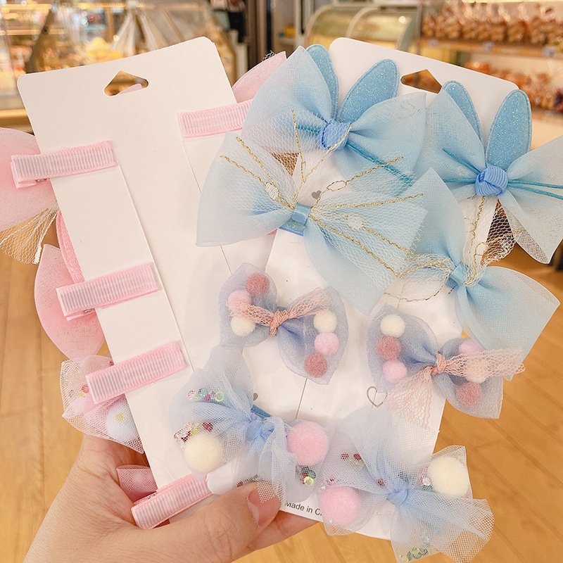 Kids Sweet Colorful Bow Pompon Mesh All-inclusive Hairpin